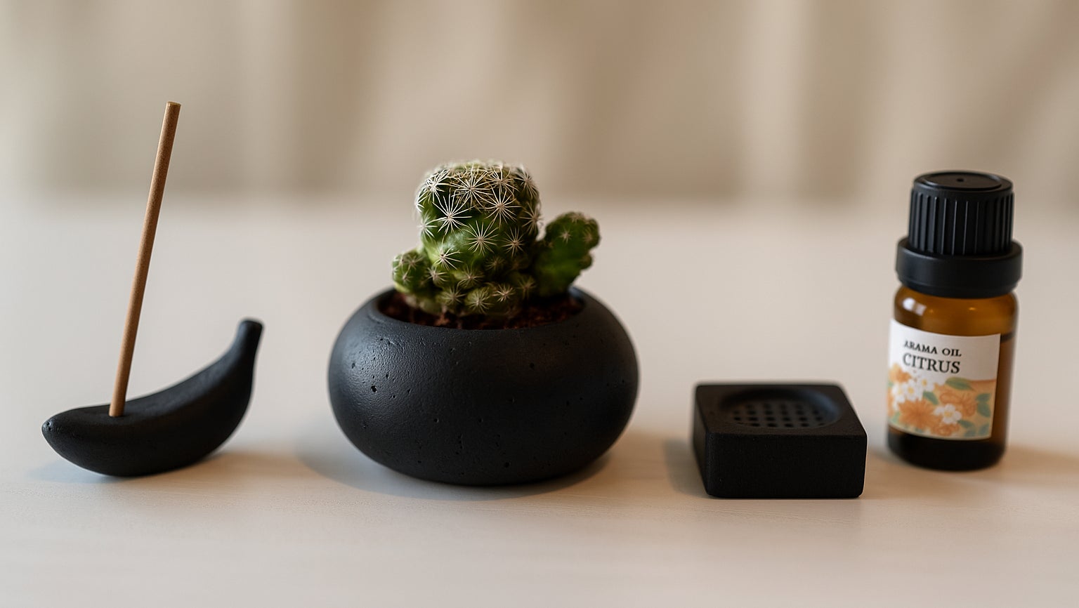 「BANANA BLACK」は、炭化したバナナの皮や果肉を主原料とした“バナナ炭”を、FOOD STONEの技術で石のような素材に再構成し、アロマストーンやお香立て、ミニプランターといったプロダクトへと昇華させたアップサイクルデザインシリーズです。