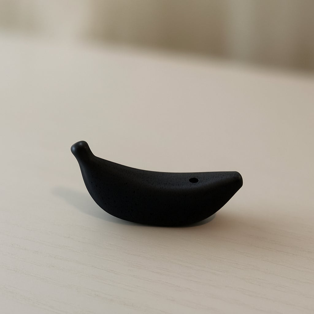 バナナの形を模した、遊び心あるデザイン。炭の質感が香立てとして相性抜群。