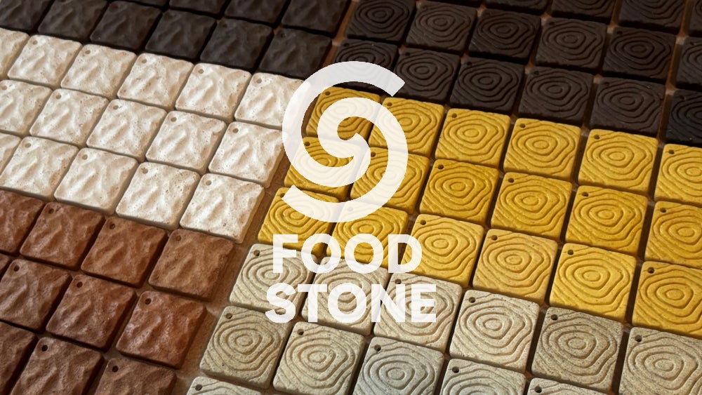 コーヒーかす、果皮、野菜の皮など、本来なら捨てられていた素材たちに海水由来のミネラル成分を掛け合わせ、石のような質感と存在感をもつプロダクトに再生させています。