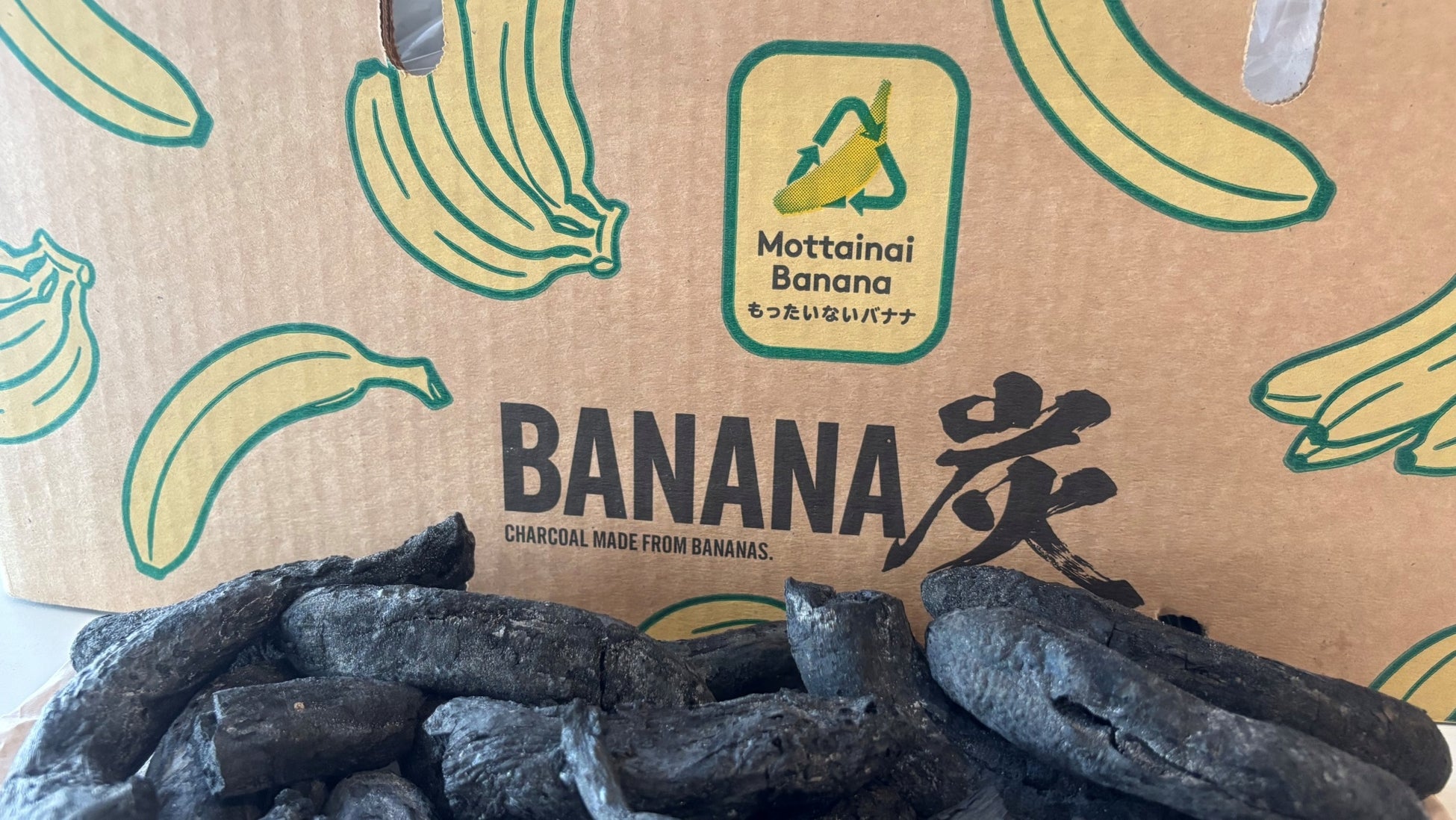 「バナナ炭」は、ドールが推進する「もったいないフルーツプロジェクト」から誕生したサステナブル素材です。フィリピンの生産地で規格外や傷などにより出荷できないバナナを炭化し、キャンプやバーベキューの際の火熾し材として販売されています。