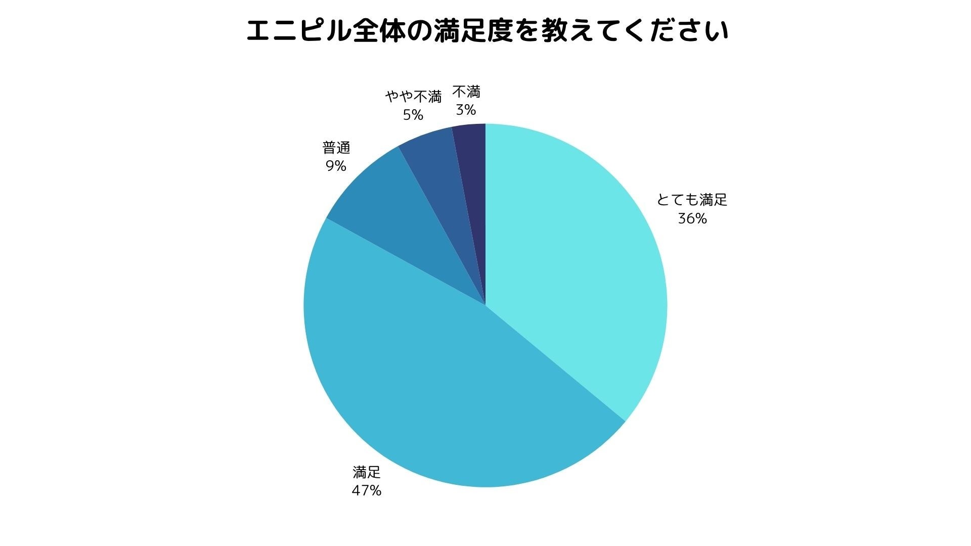 「とても満足」と「満足」を合わせて83%という結果は、エニピルというサービスが多くのユーザーに高い満足感をもたらしていることを示しています。