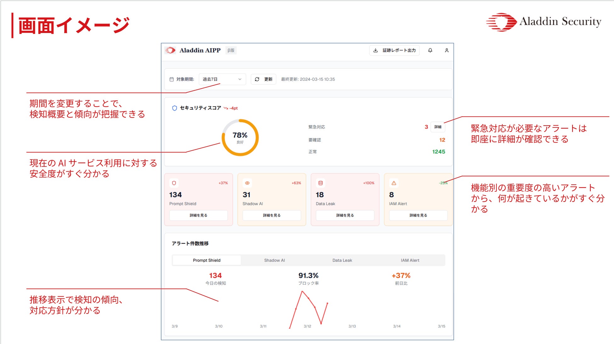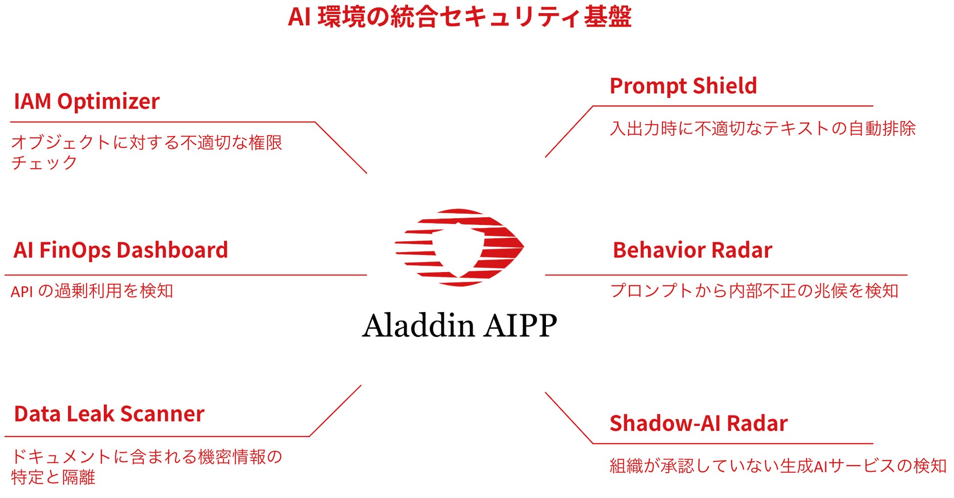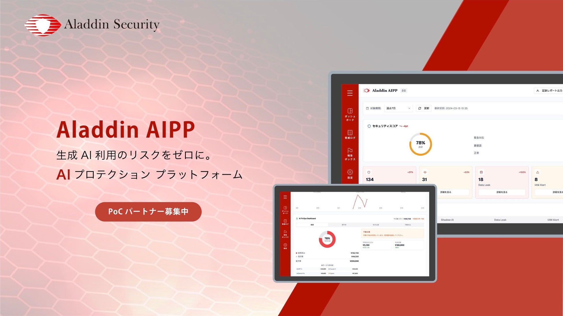 Aladdin Security 株式会社(本社:京都府京都市上京区、代表取締役 CEO:勘佐 圭吾、以下「Aladdin Security」)は、生成 AI/大規模言語モデル(LLM)の利用に伴う情報漏えい・過剰権限・コスト肥大化リスクを包括的に可視化・防御する AI Protection Platform「Aladdin AIPP」β版 を 提供開始いたします。