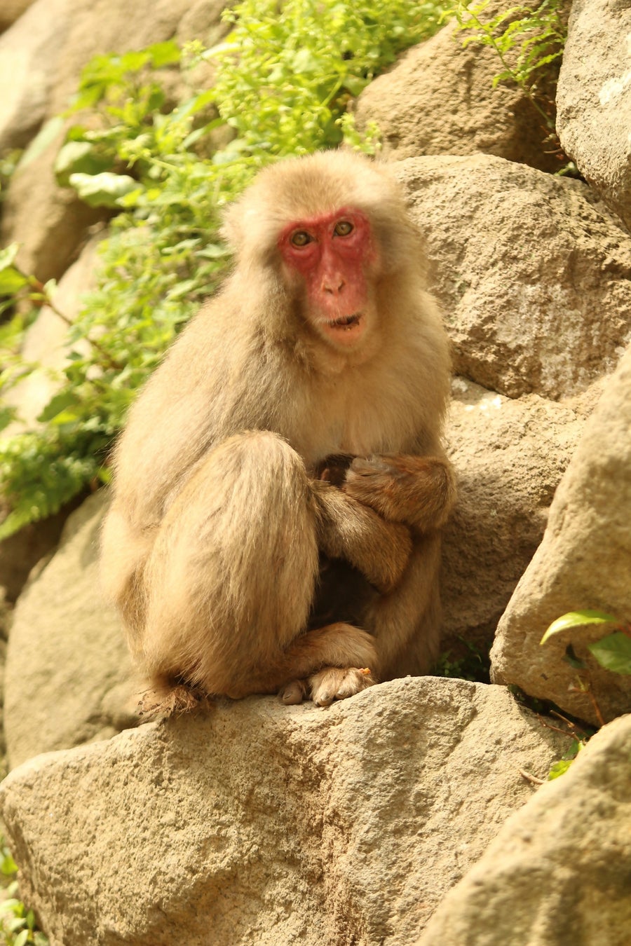 バンパクはおおむね午前9時~午後1時まで、母ザルのコンビニと一緒にサル寄せ場に滞在します。