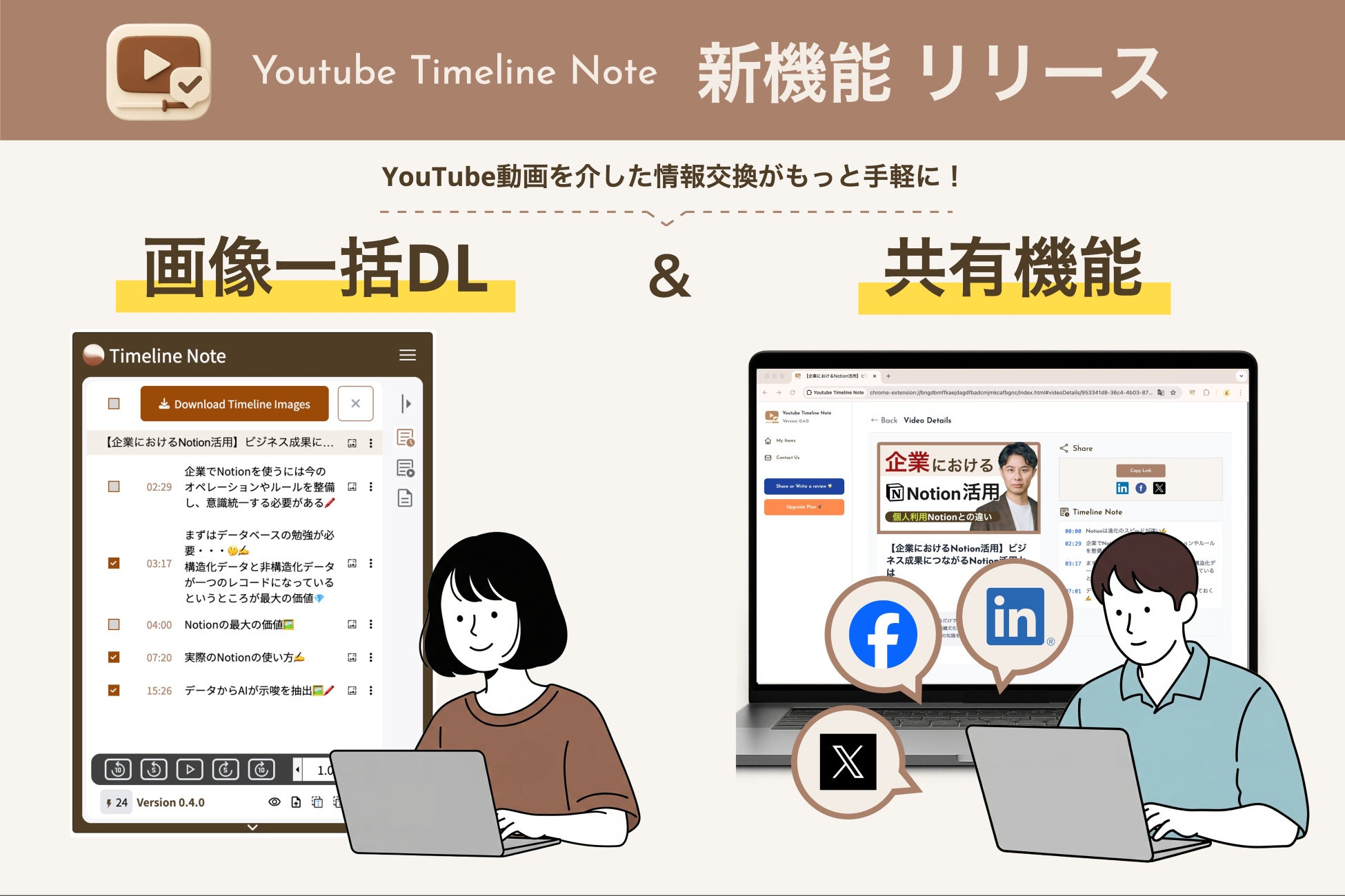 【YouTube Timeline Note】動画視聴後の情報共有がさらに便利になる2つの新機能をリリース!