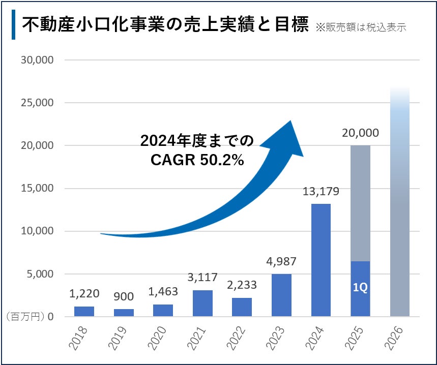 不動産小口化事業は、2018年の販売開始から七年度目の2024年度に売上131億円、八年度目となる2025年度は売上200億円を目標とし、順調に進捗しております。