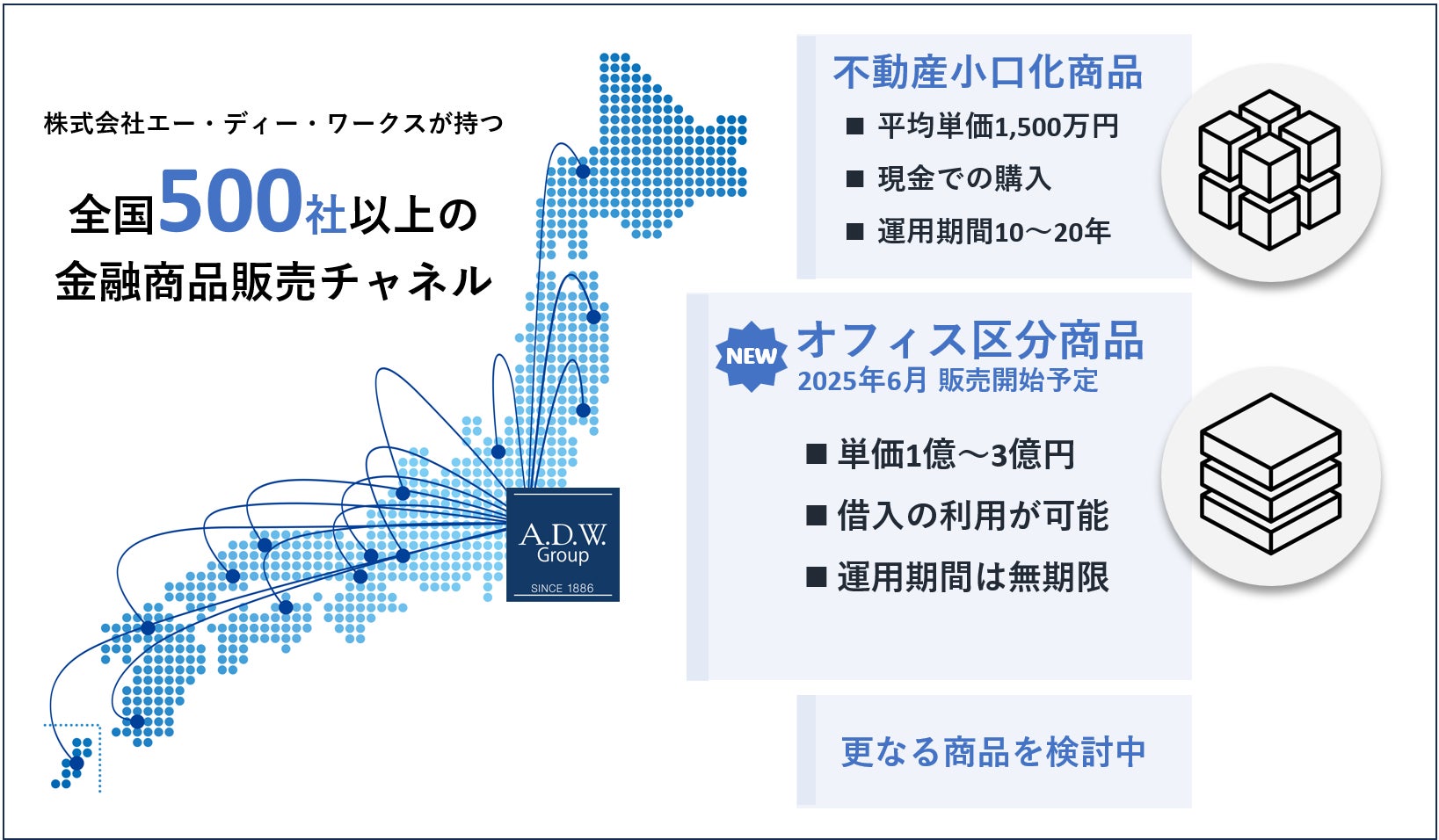 株式会社ADワークスグループ(所在地:東京都千代田区、代表者:代表取締役社長CEO田中秀夫、以下「ADWG」)の子会社で、収益不動産事業を推進する株式会社エー・ディー・ワークス(本社:東京都千代田区、代表取締役社長:鈴木俊也、以下「ADW」) は、ブランド名を「ARISTO PLUS」とする、オフィス区分販売事業へ参入します。