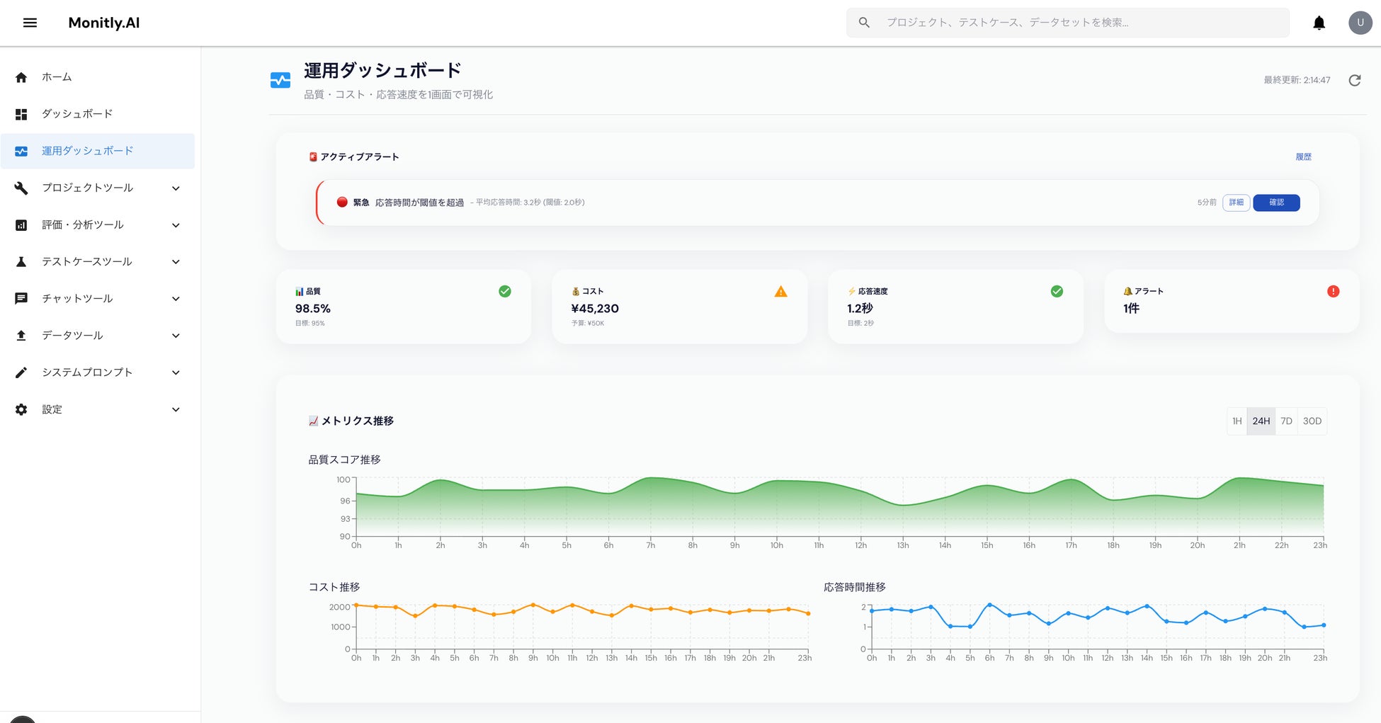 実運用時の品質・コスト・応答速度をリアルタイムで可視化できる新ダッシュボードを追加。