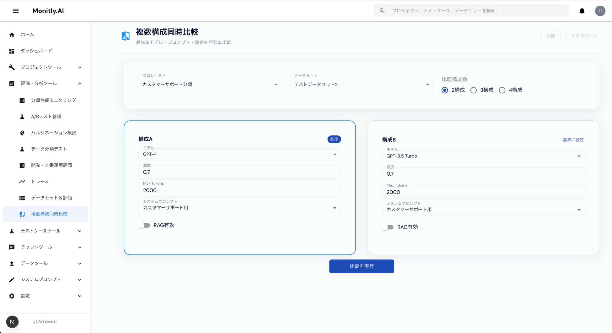 Monitly.AIは、生成AI(RAG・エージェント含む)の出力品質を継続的に評価・改善するためのオールインワンプラットフォームです。