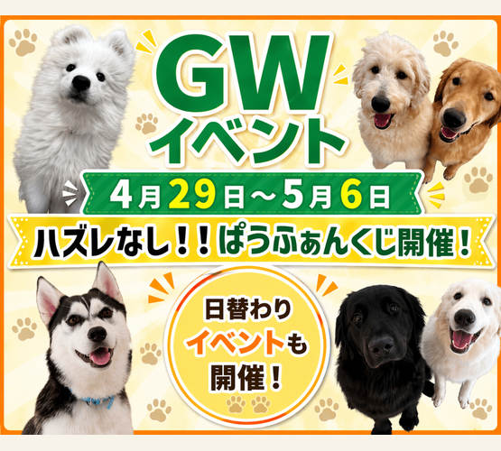 PawsFanでは、2026年4月29日から5月6日まで、ゴールデンウィークイベントを実施します。