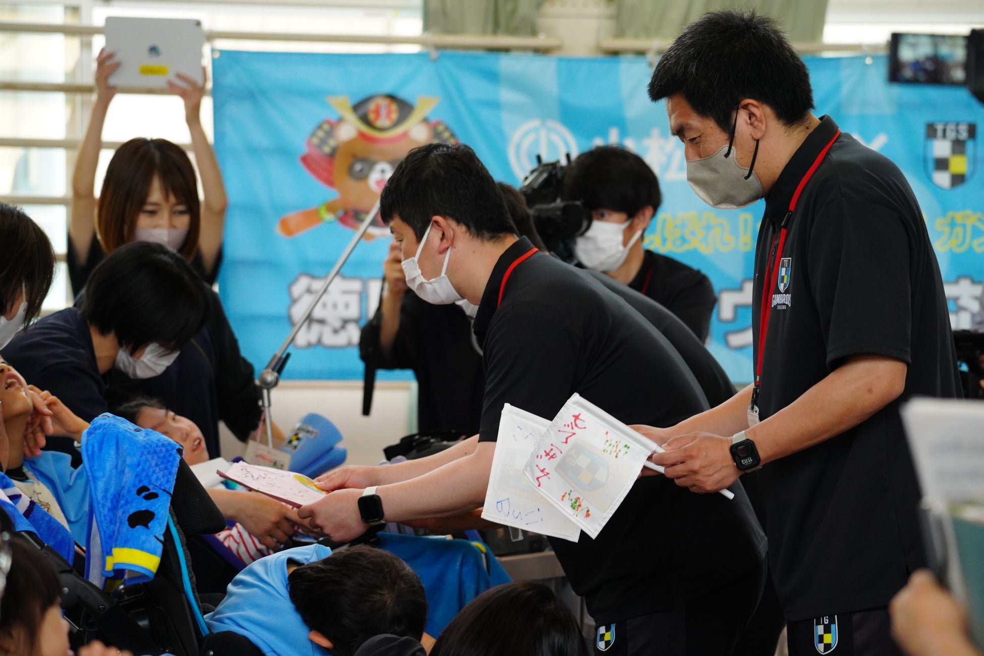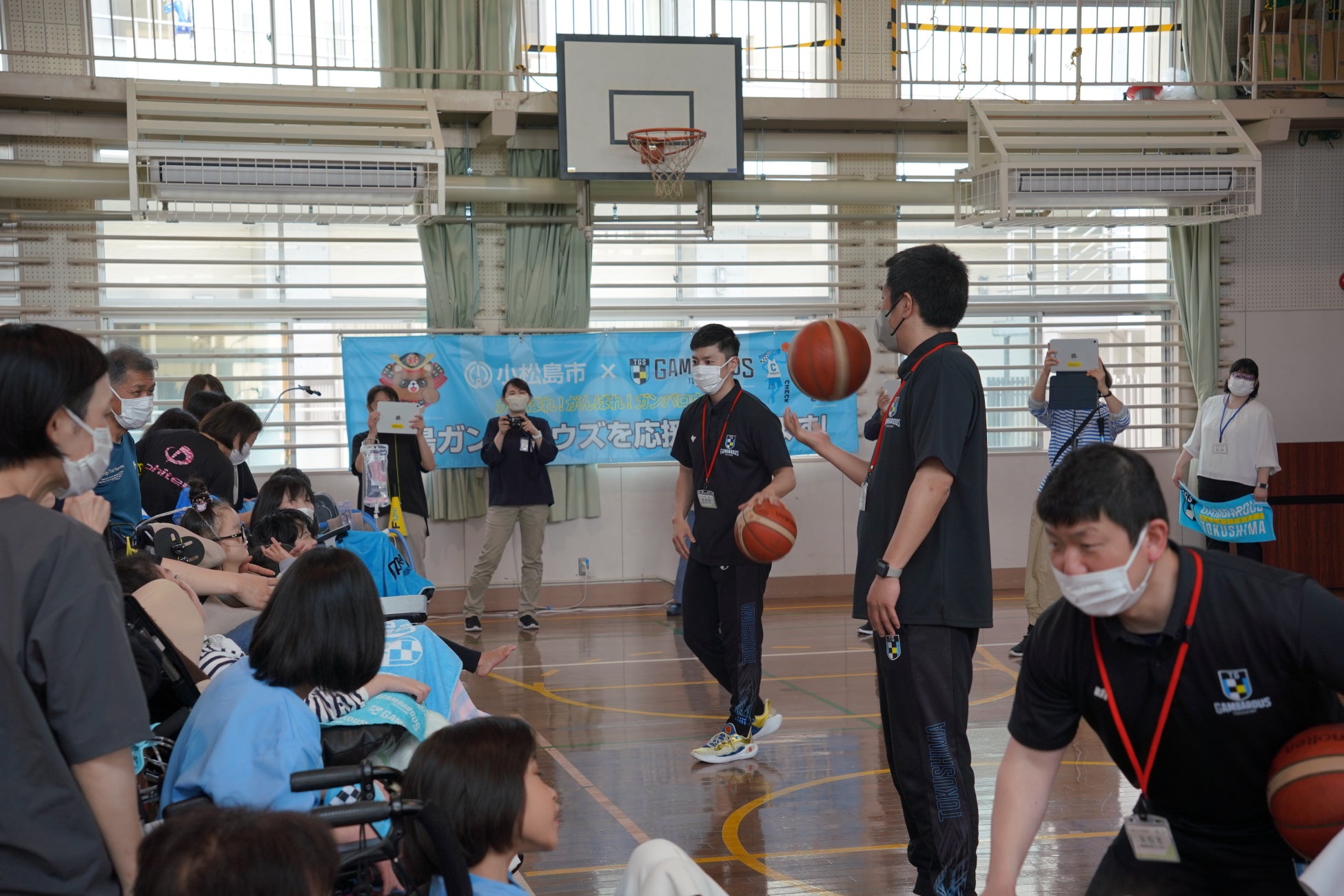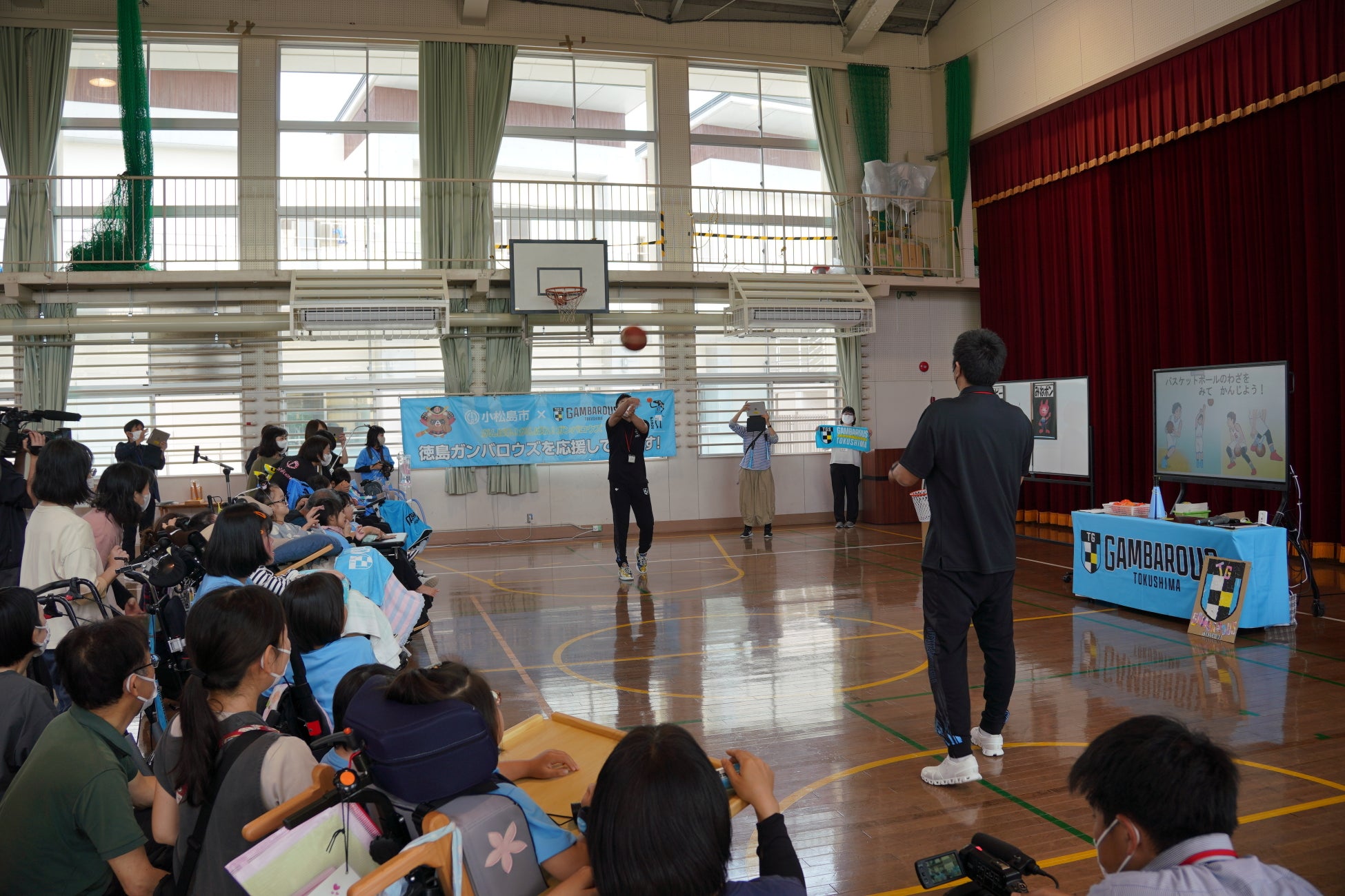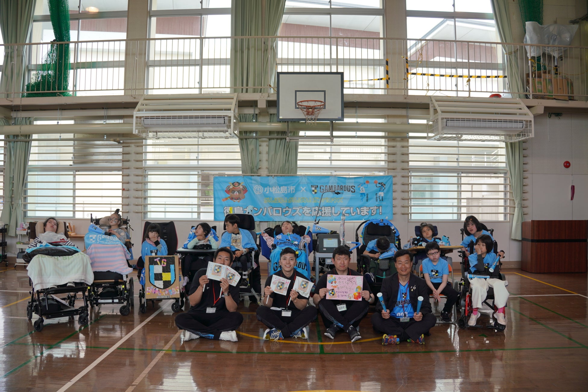 徳島ガンバロウズは5月15日(木)にフレンドリータウンである小松島市との連携交流事業に基づき、徳島県立ひのみね支援学校(小松島市)において連携交流授業を開催いたしましたのでお知らせします。