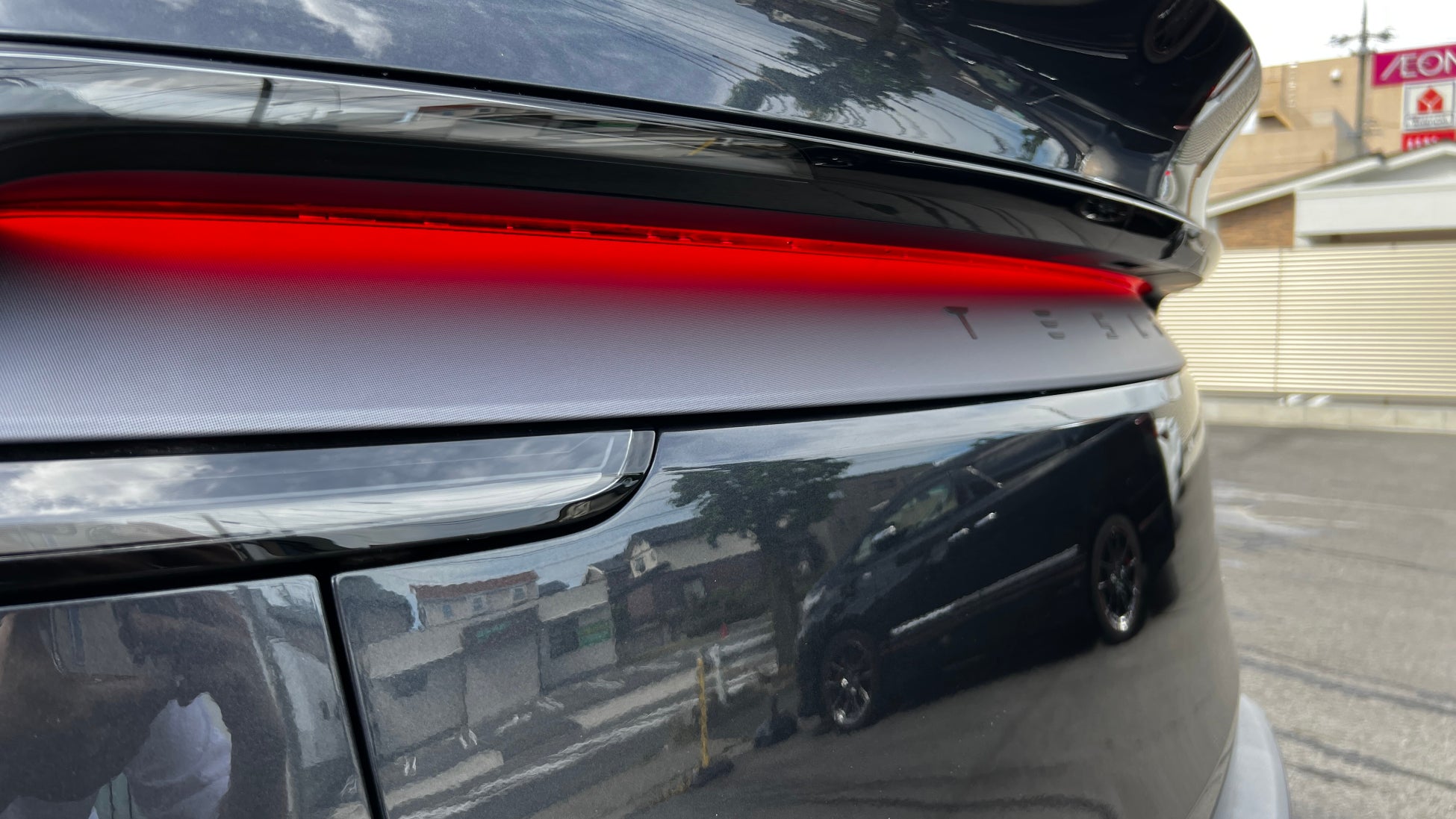 モデルYローンチエディションのリアエンドには、まるで高級インテリアに使われる間接照明のようなテールライト構造が採用されています。光源を直接見せるのではなく、ボディラインと調和する形で柔らかく光を拡散させるこの手法は、テスラが従来の自動車デザインの枠を超えている証でもあります。