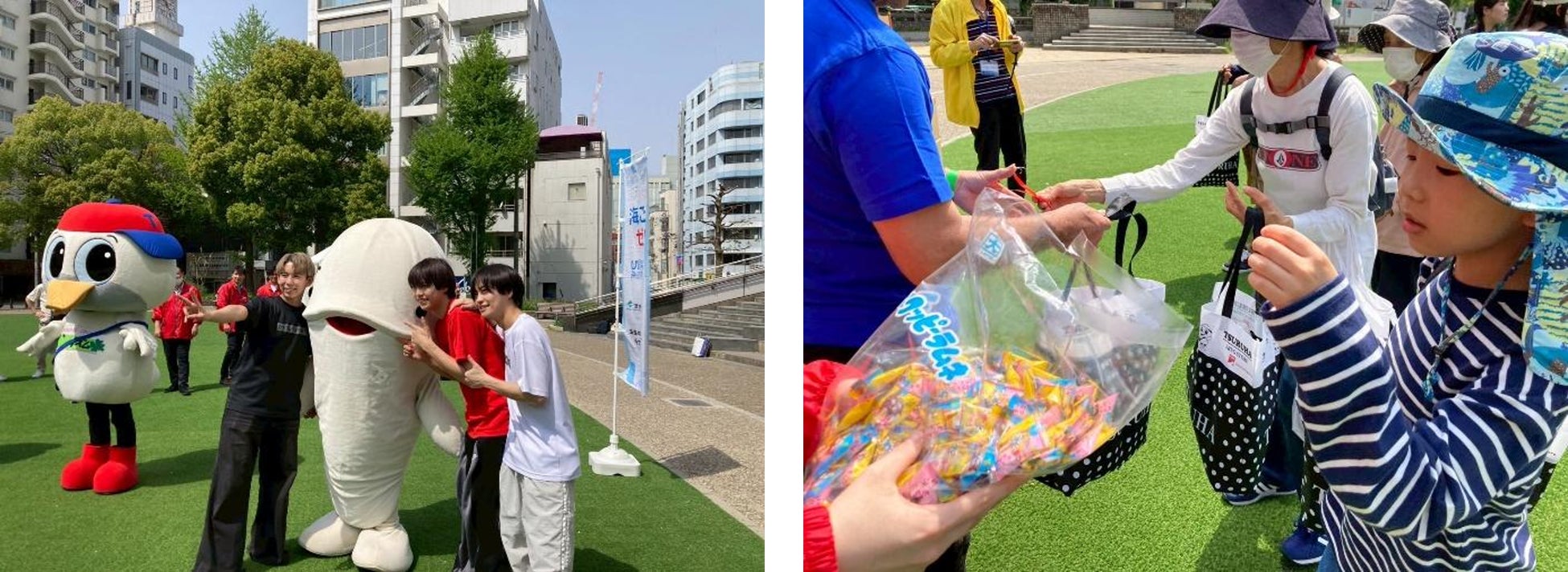 キャラクター「メリ夫」と「つるくん」も一緒に、楽しくごみ拾い!