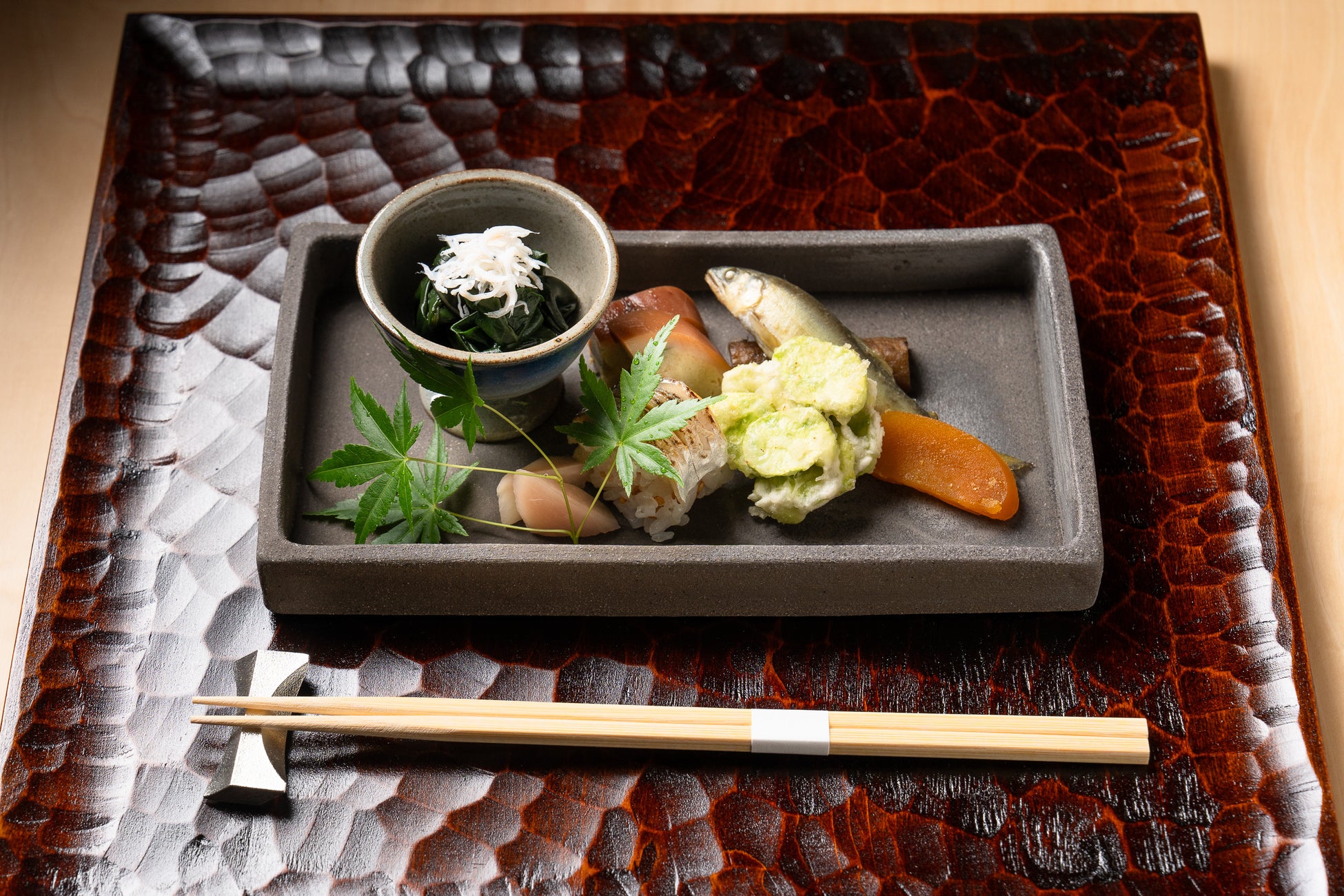 季節のあしらいが彩りと香りを添える、職人技が光る一皿です。