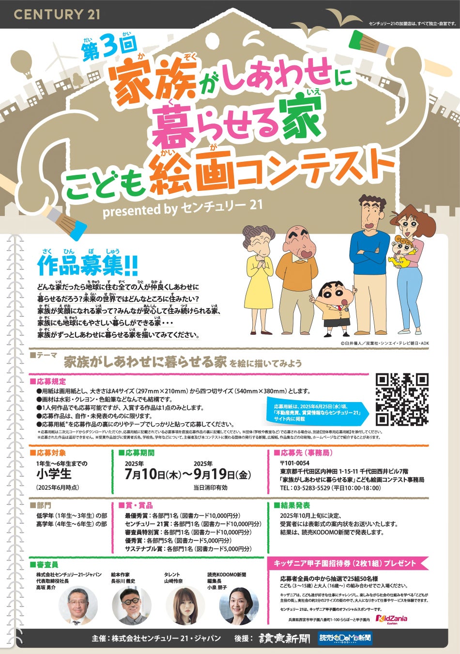 株式会社センチュリー21・ジャパン(本社:東京都港区、代表取締役社長:高坂勇介、以下 センチュリー21)は、これからもみんながしあわせに住みつづけられるまちづくりに貢献したいとの想いを、未来を担うこどもたちとともに分かち合えたらとの願いを込めて、本年もこども絵画コンテストを主催いたします。