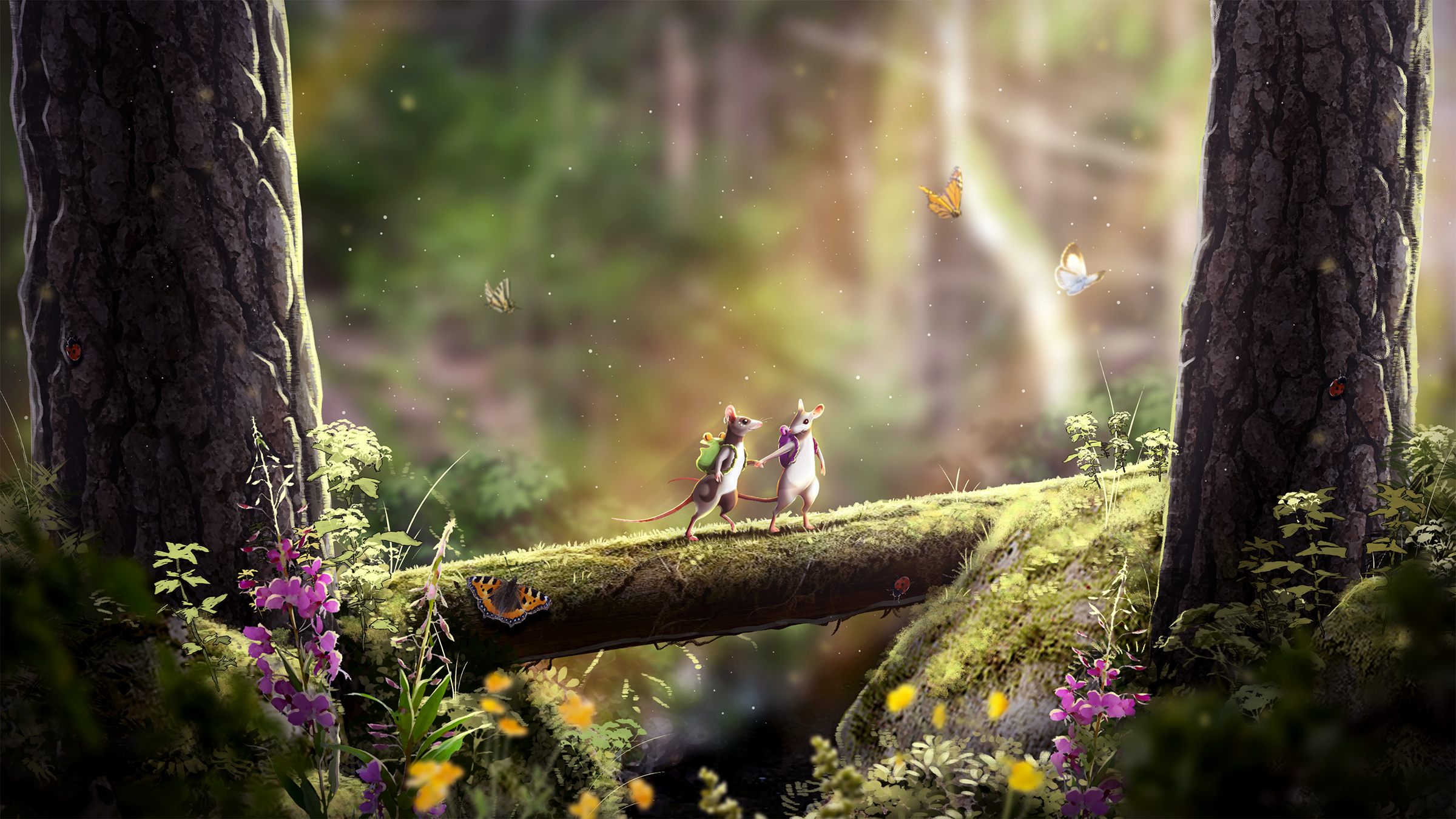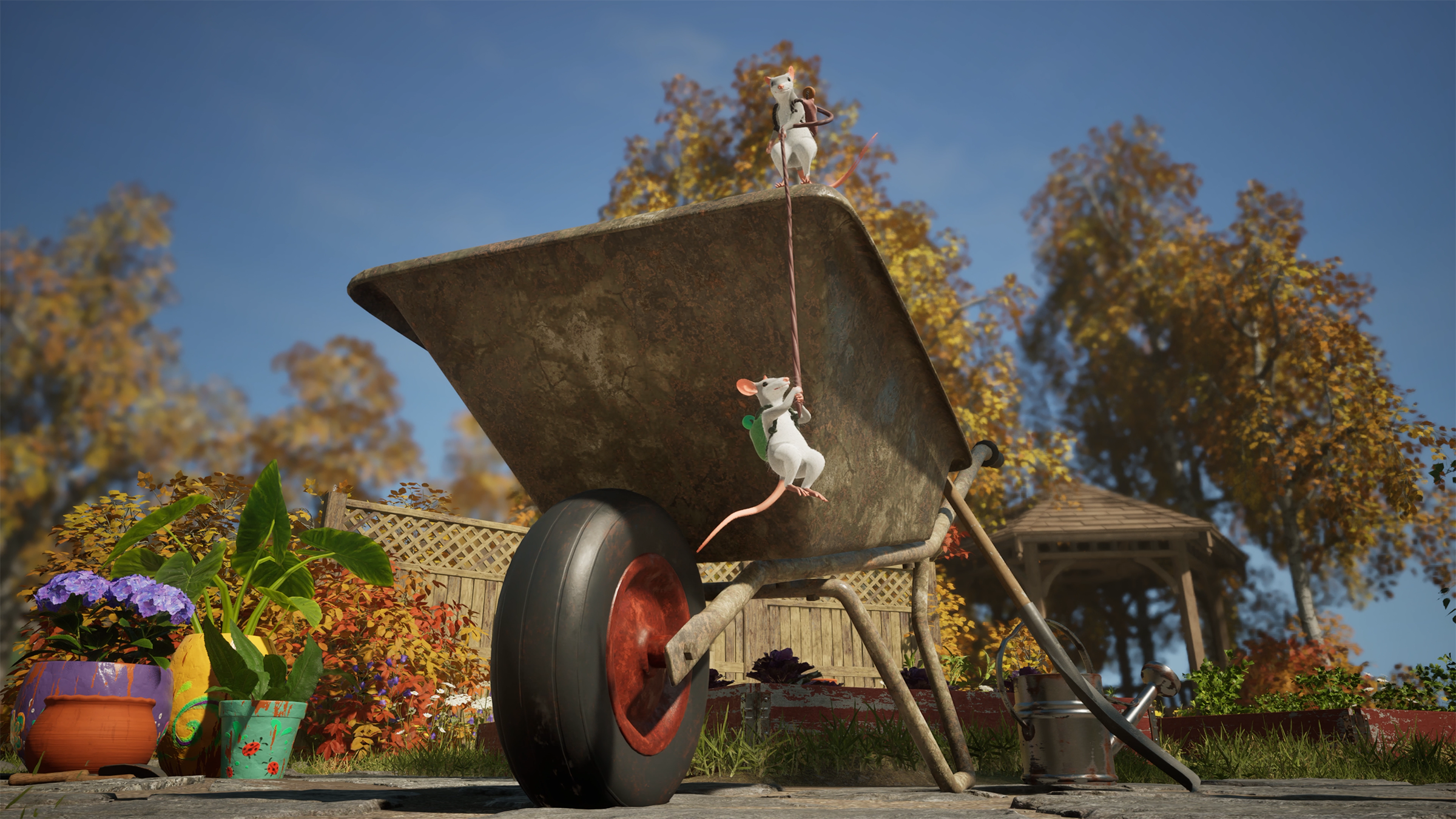 このマイルストーンにあわせて、最新トレーラーが「Best Indie Games Winter Showcase」にて初公開されました。『Hela』の中心にあるのは、「魔法のような楽しさ」と「ネズミの姿で美しくデザインされた世界を自由に遊ぶこと」です。プレイヤーはストーリーや探索において、自分のペースと進み方を自由に選ぶことができ、広大な世界に隠された秘密を発見していきます。この自由度はプレイスタイルにも反映されており、シングルプレイ、友人との画面分割プレイ、最大4人でのオンラインプレイと、柔軟なプレイが可能です。