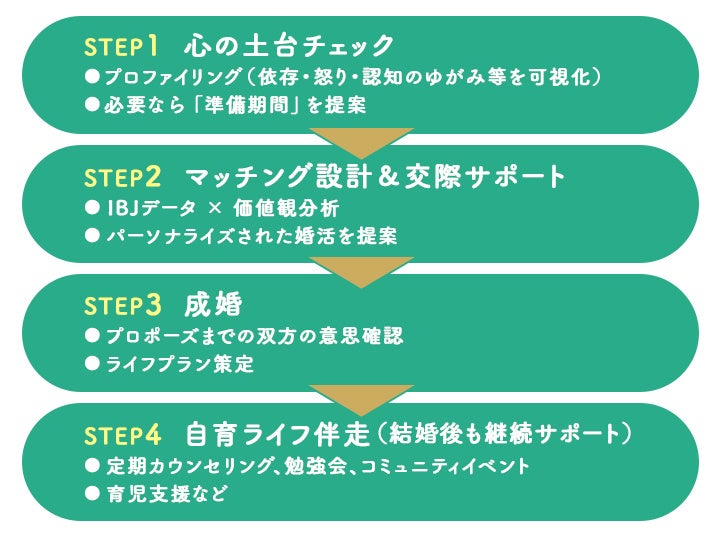 「結婚してから不幸になる人を、一人でも減らしたい」そんな願いのもと、一人ひとりが「納得して続けられる関係」を築くための土台づくりを、私たちはこれからも大切にしていきます。