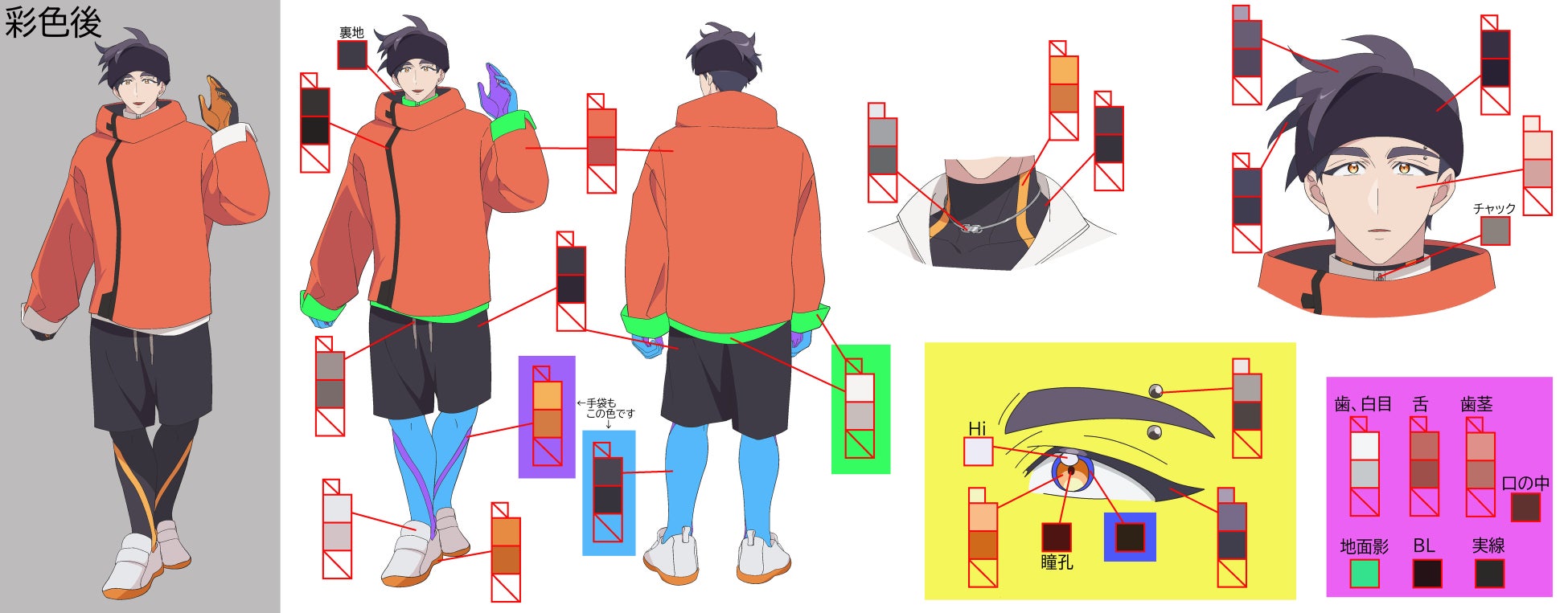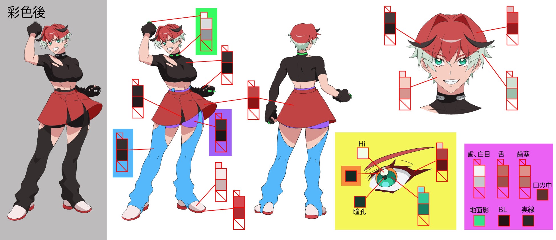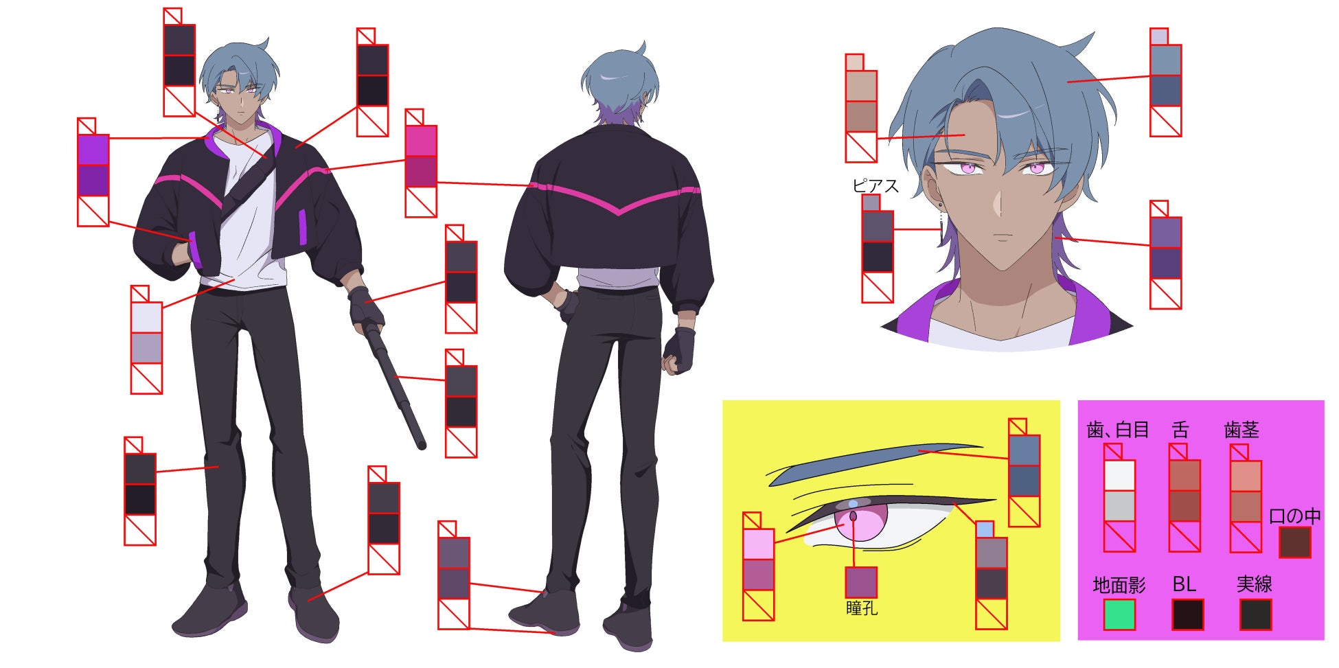 ストリートカルチャーとメカを融合させたビジュアル重視の意欲作。個性と自己表現をテーマに、異なる価値観を持つ若者たちが衝突しながらも共に成長していく姿を描く。衣装やキャラクターデザインには学生自身の感性が反映され、ファッションやモーションにも細部までこだわりました。各キャラクターの設定資料では、髪色や衣装の配色に個性が際立ち、キャラクターの背景や性格がビジュアルからも伝わる仕上がりになっています。