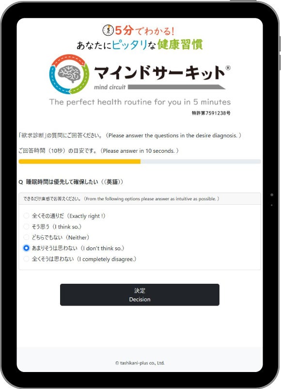 たしかにプラス株式会社(本社:大阪市北区、代表取締役:深谷 泰亮、以下 たしかにプラス)は、健康食品や健康習慣に興味をもった人が誰しも一度は体験する「やってはみたものの続かなかった」という悩みに対して、自分にあった健康習慣を身につけられるプログラム「マインドサーキット」を開発しました。