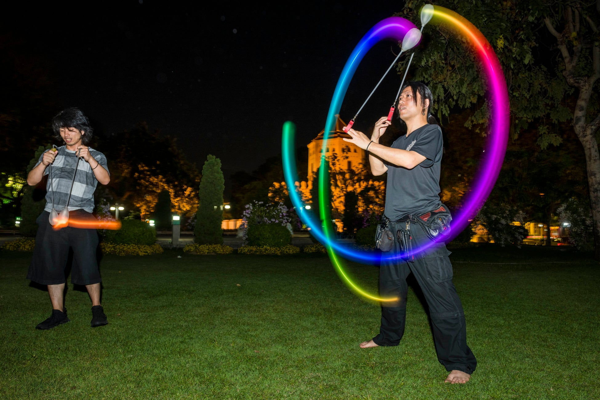 暗い時間に光るパフォーマンス道具でのワークショップ体験