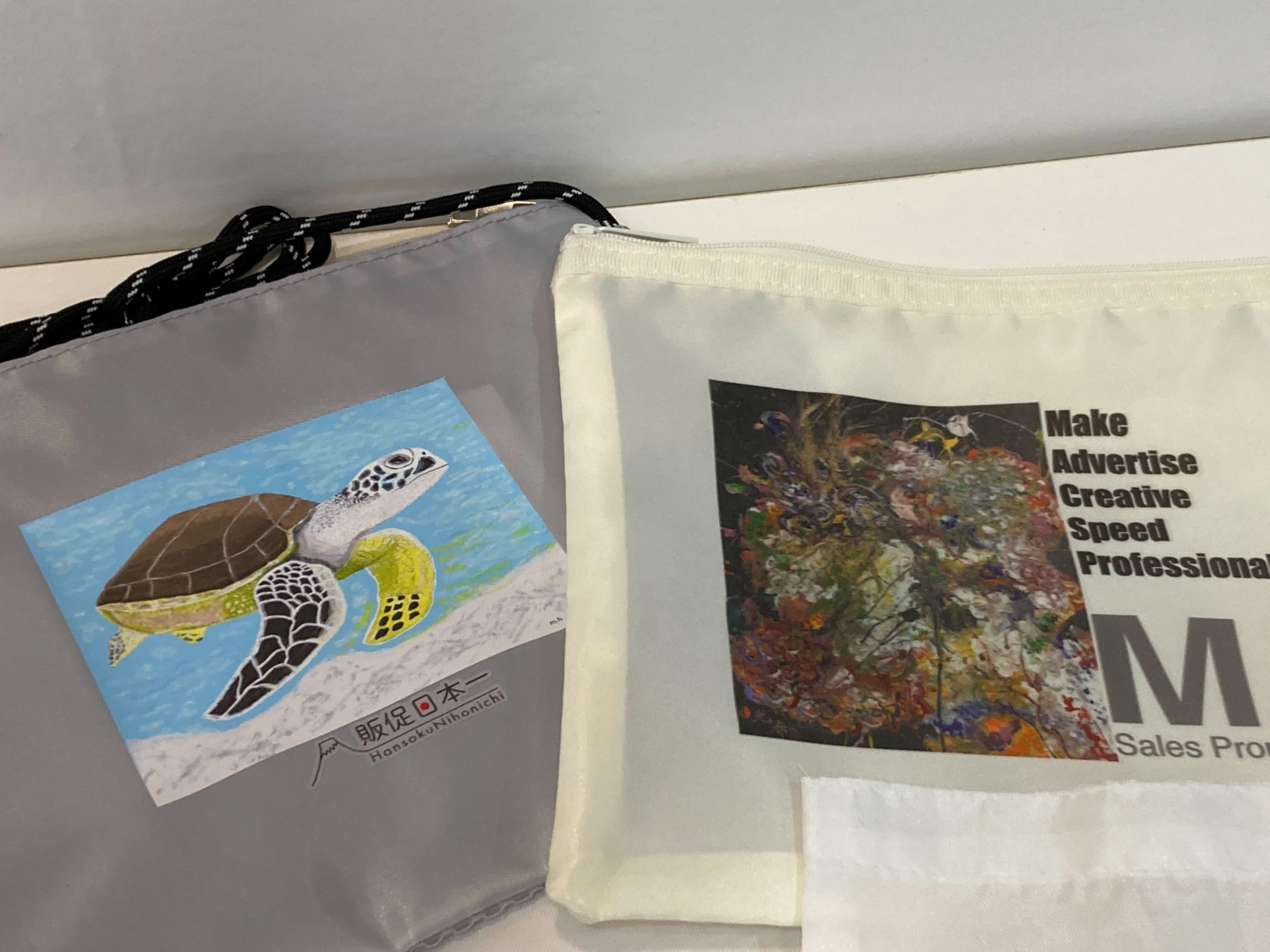 世の中には何千、何万種類もの多種多様なノベルティ商品があり、それらに多種多様な印刷方法でロゴやイラスト、写真などをプリントして完成に至ります。