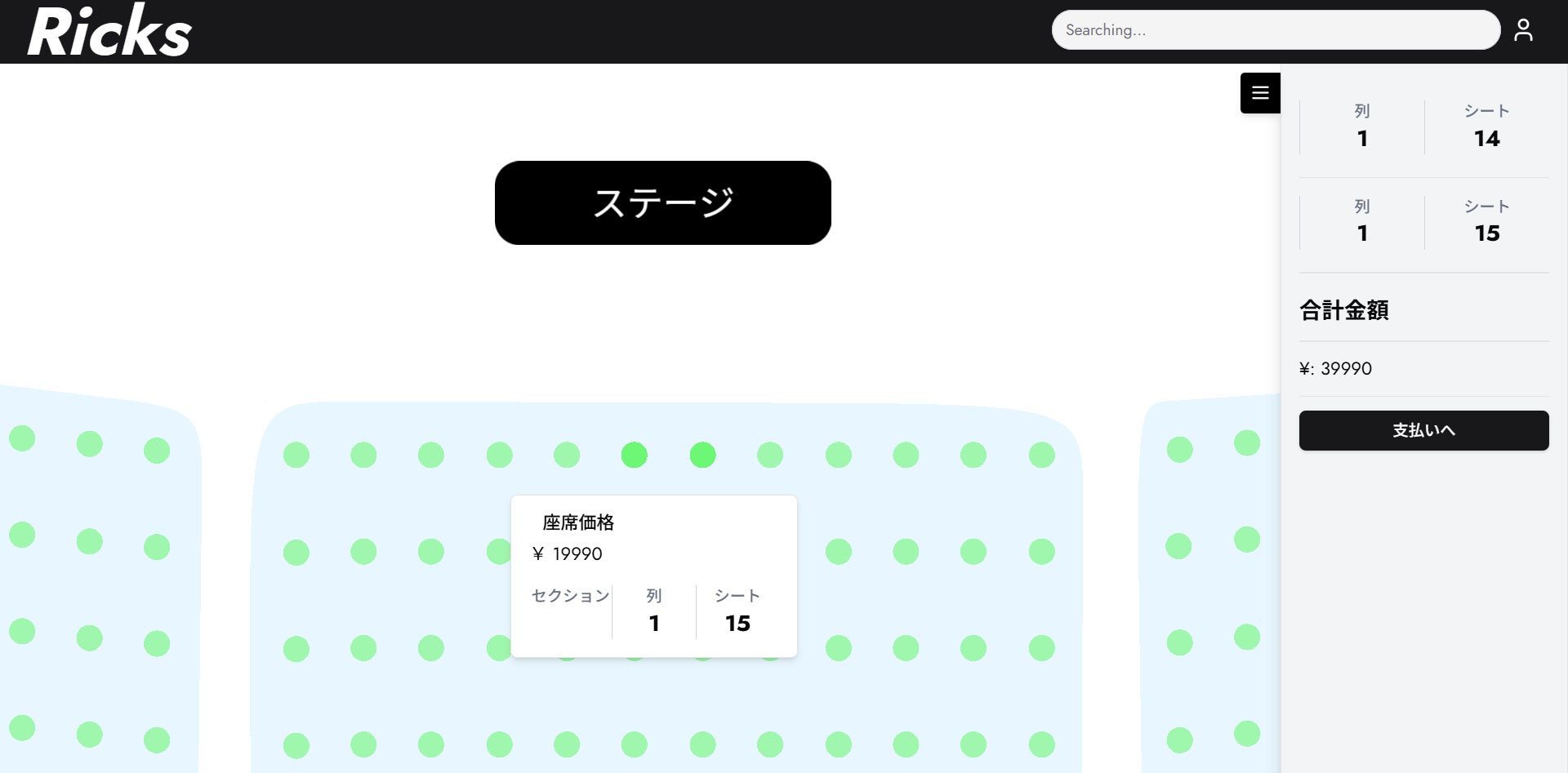 「会場図から座席を指定購入できる」チケットサイト、「Ricks」β版(デモ版)の利用者を募集開始