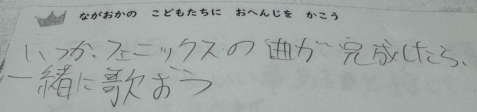 能登の小中学校/高校を訪問しながら(宝立小学校・穴水小学校・松波小学校・輪島合同6校・門前中学校・輪島高校・七尾高校)子どもたちから300以上の「復興への想い」をあずかり、合唱曲「フェニックス」を作曲させていただきました。
