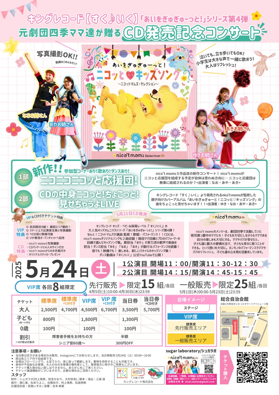 川崎市を拠点に活動するパフォーマンスグループ「ニコットマムズ」が、キングレコード「すく♪いく」シリーズのCDを初監修。5月24日、武蔵小杉にて記念コンサートを開催。