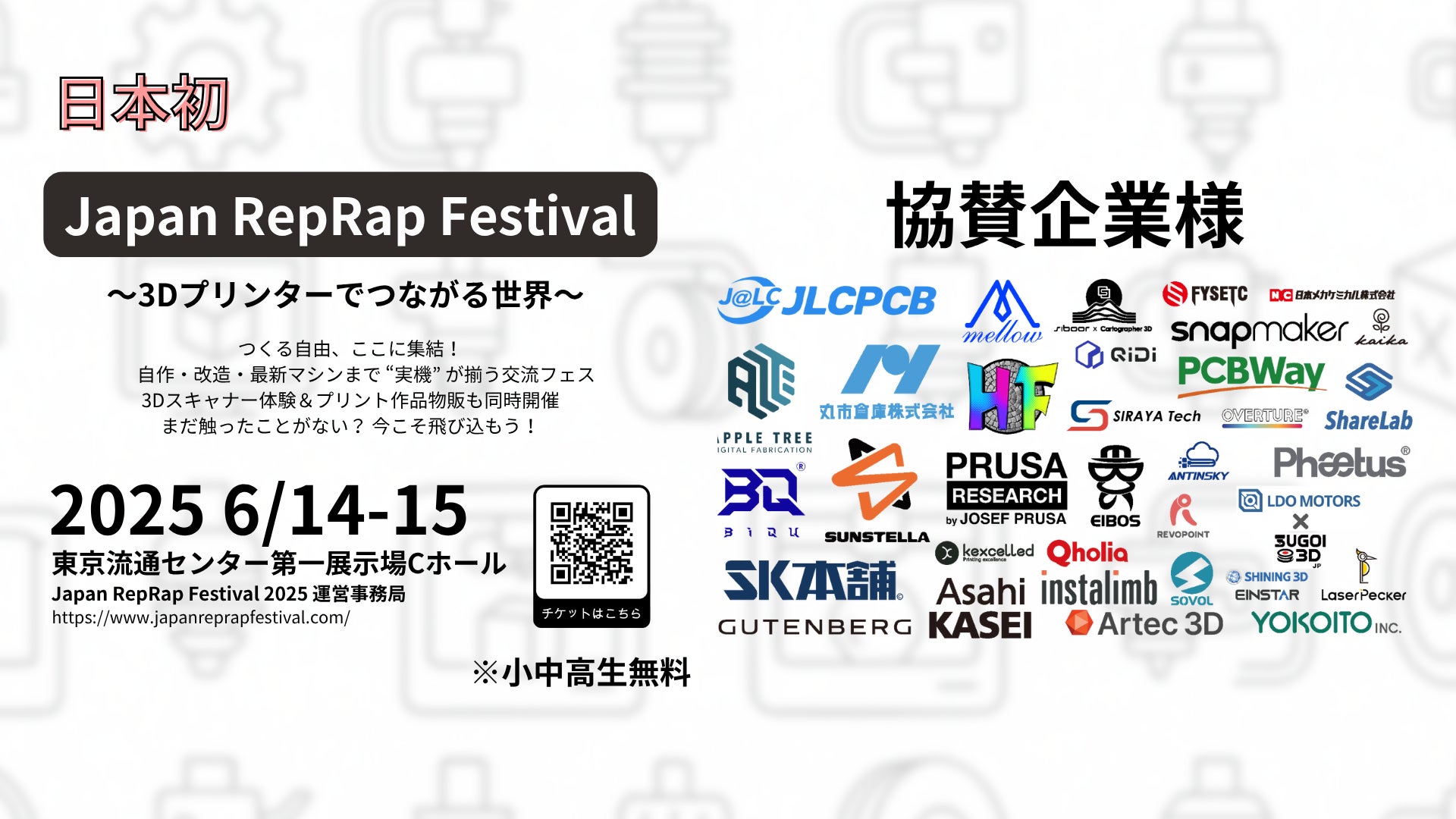 【日本初】3Dプリンター愛好家の祭典「Japan RepRap Festival 2025~3Dプリンターでつながる世界~」今週末6/14-15に大田区東京流通センターで開催!