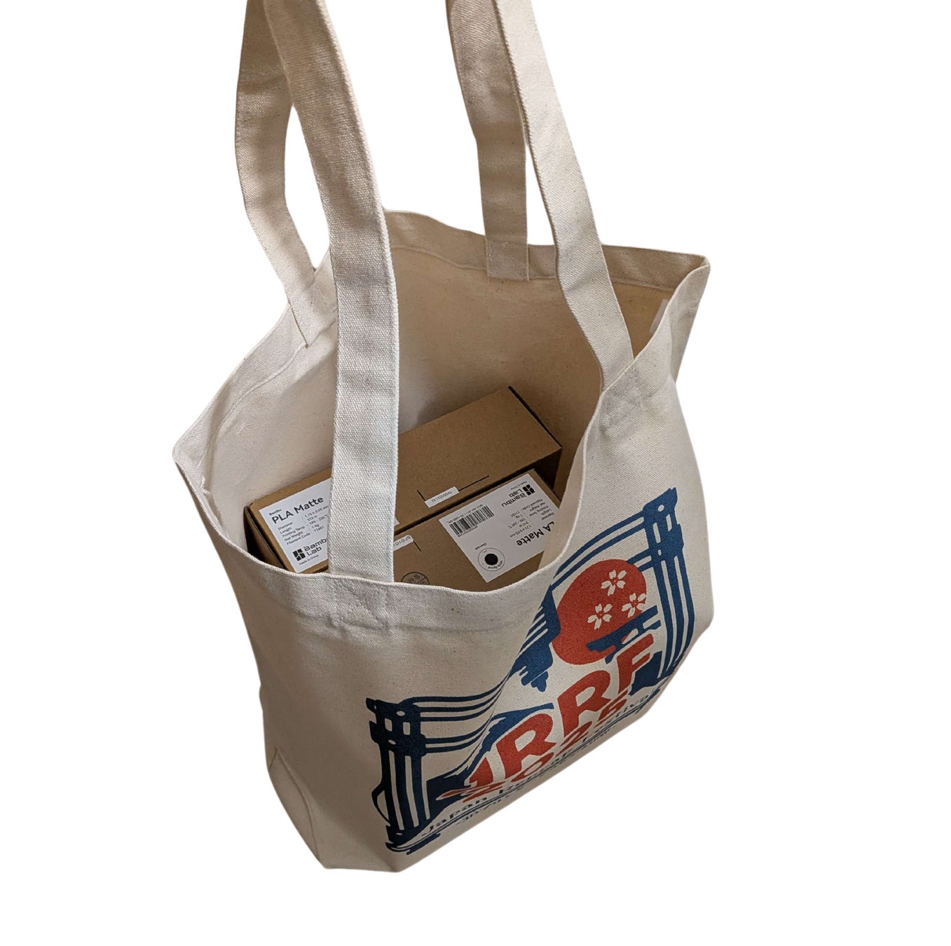 当日は数量限定でマニアックなステッカーやトートバッグの販売も行います。数に限りがありますので売り切れの際はご容赦ください。トートバッグはフィラメントをいれてもちょうどいいくらいのタフなものをチョイスしております。これがあればいつでもフィラメントを持っておでかけが!