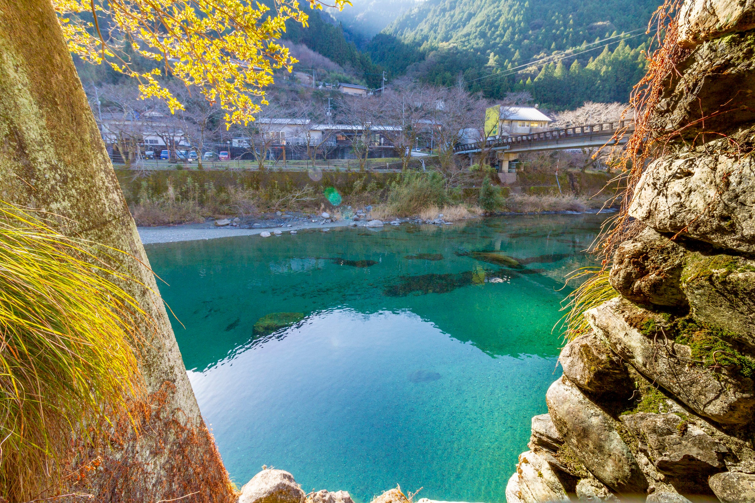 冬の澄み切った仁淀ブルーと静寂の川辺