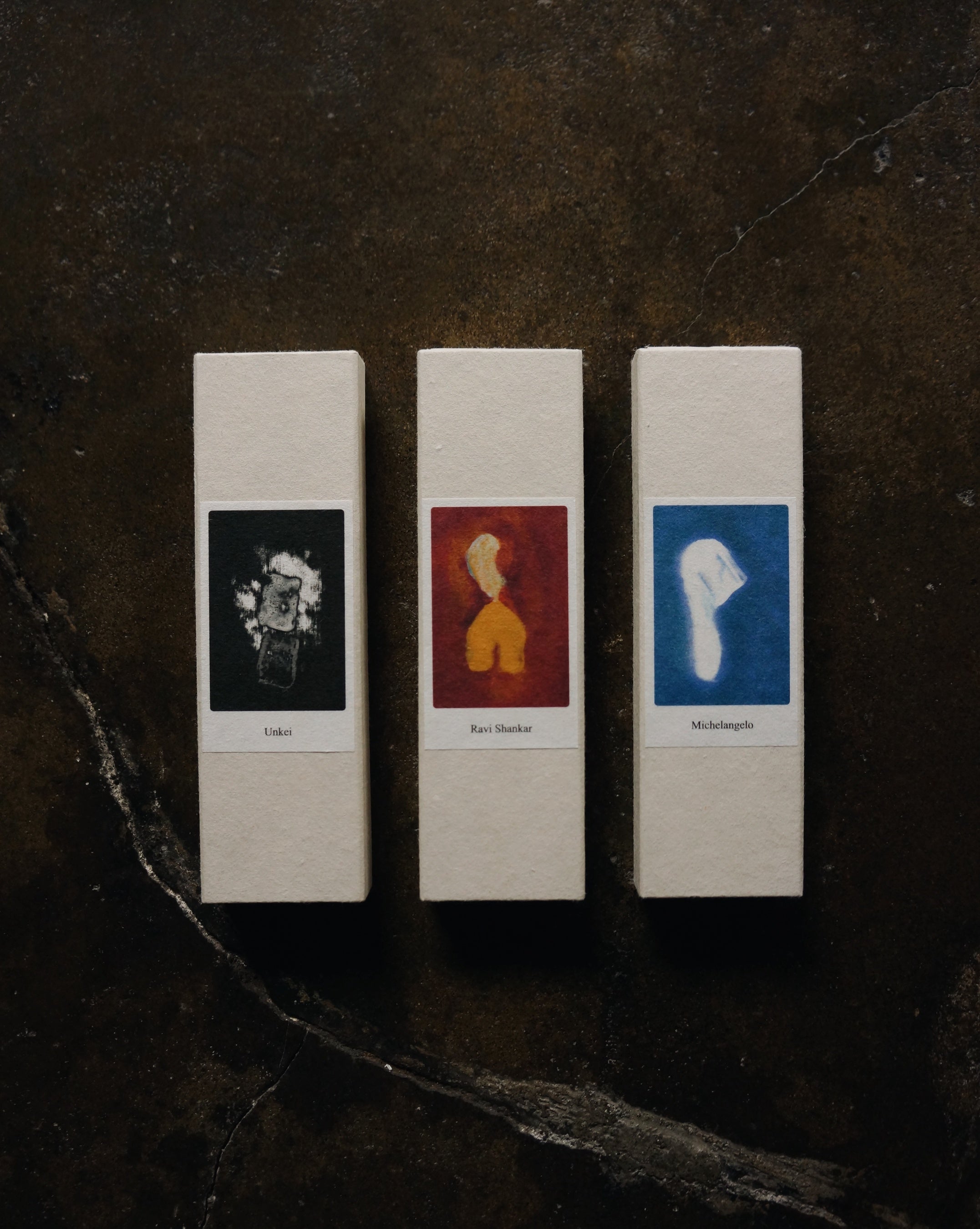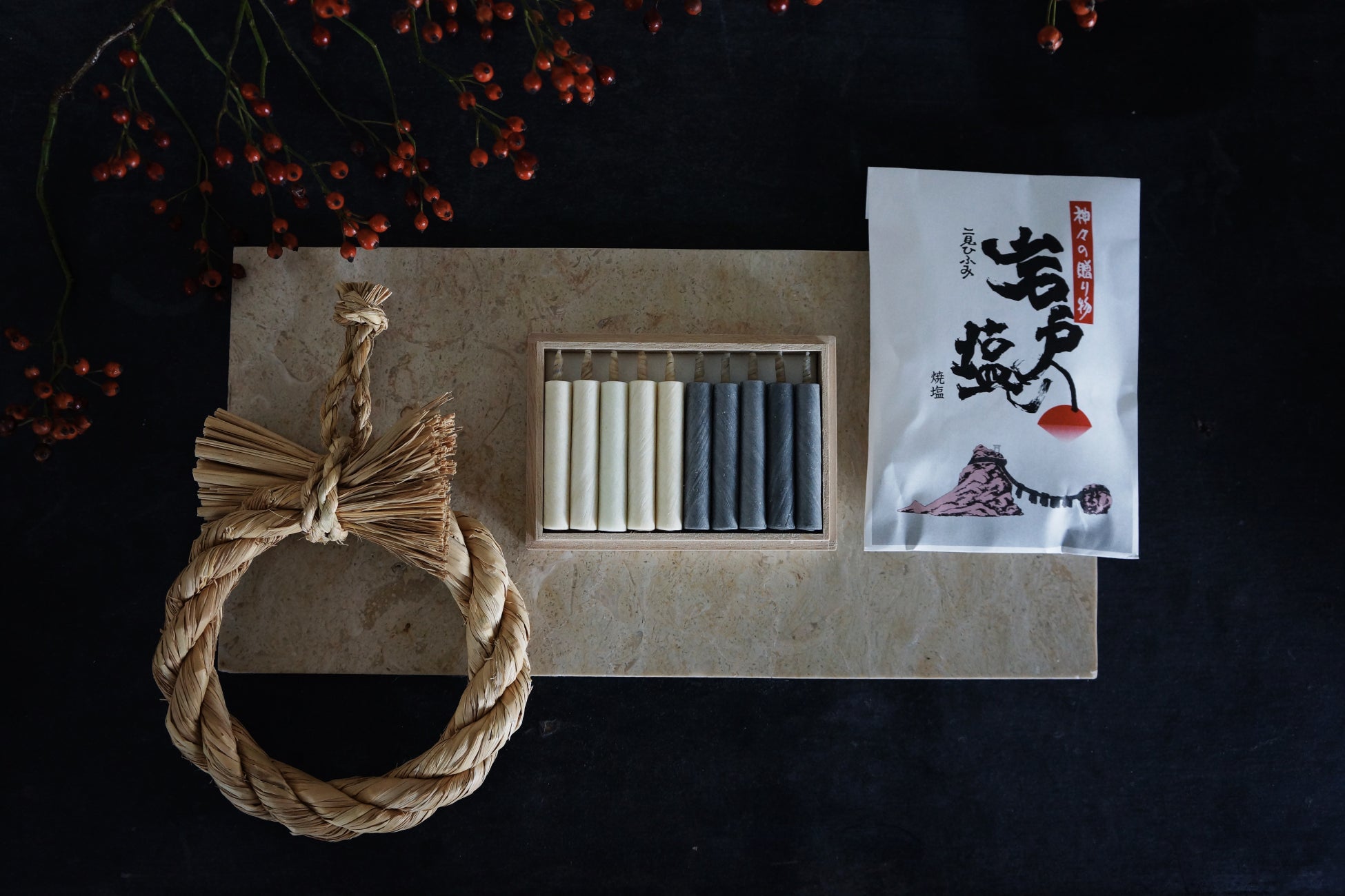 今年の新作グラデーション和蝋燭は、宗教哲学を芸術で表現した人物「運慶」「ミケランジェロ」「ラヴィ・シャンカル」を題した3作品。人気の数量限定の福袋は、調和とお清めをイメージした和蝋燭の限定桐箱セット、わら細工たくぼの輪飾り、岩戸の塩を詰め合わせました。