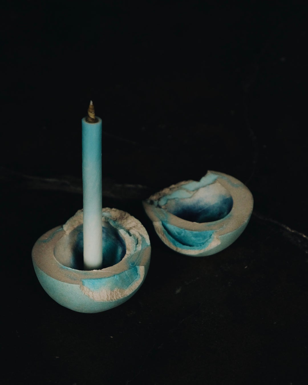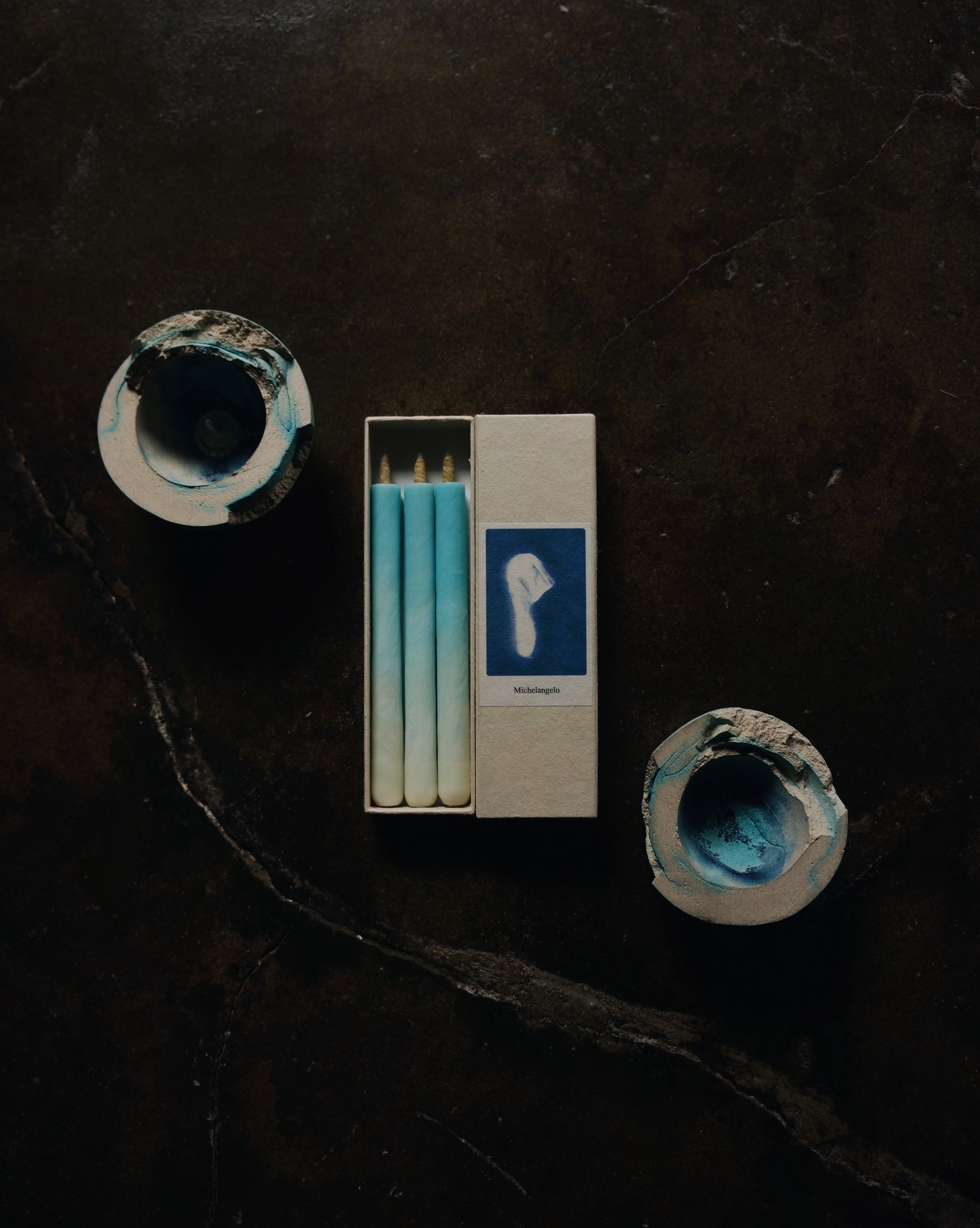 本展で発表する新作は、グラデーション和ろうそく3作品、新作とセットで使える燭台コア3作品の6アイテム。
