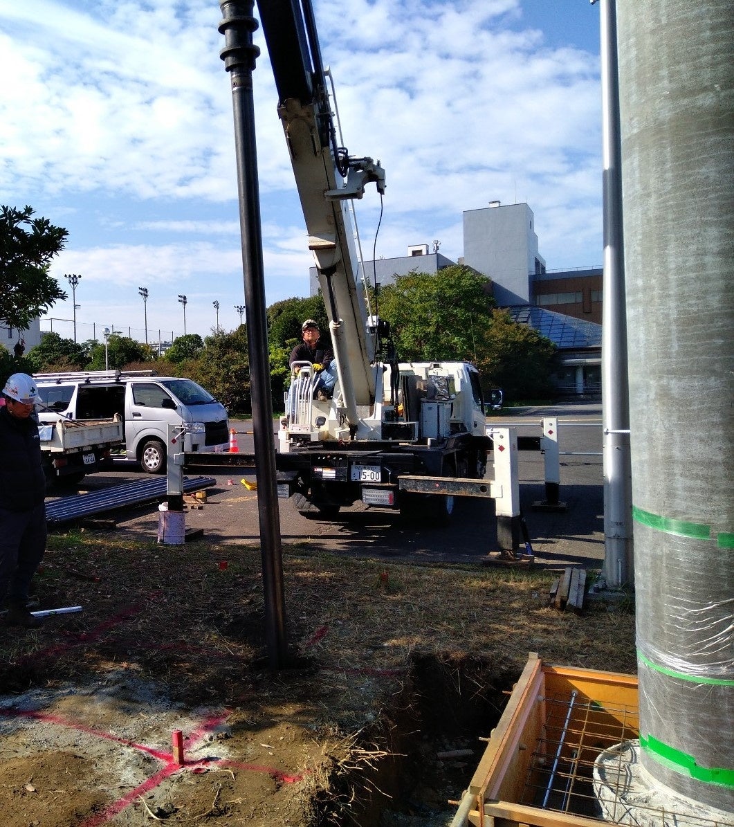 当社が提供する、公共工事での実績も豊富なSGL社様の「礎工法」など回転貫入鋼管杭を用いた強固な架台基礎は、系統用蓄電池システムの安定稼働を支え、「ワットビット連携」における電力供給基盤の強化に直結します。