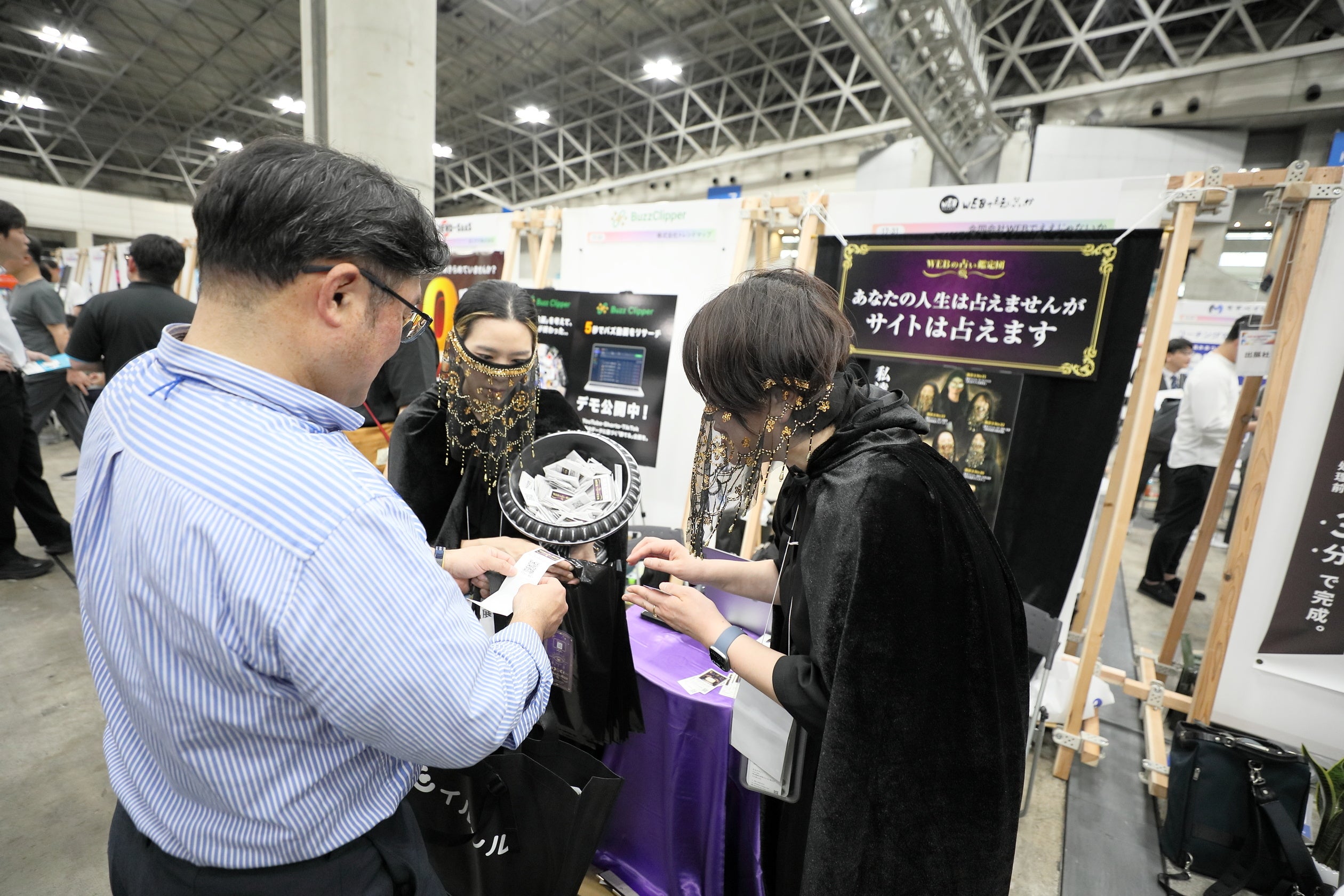 代表およびチームのデザイナーが占い師に扮し、来場者のWEBの悩みを“鑑定”する異色の企画が反響を呼び、他出展者からも注目を集めるなど、連日大盛況のうちに終了したことをお知らせいたします。