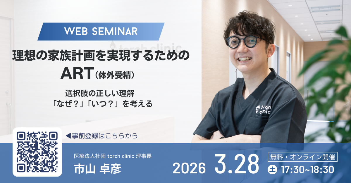 医療法人社団torch clinic(所在地:東京都渋谷区、理事長:市山 卓彦)は、東京都による不妊治療助成拡充の発表を受け、2026年3月28日(土)17:30〜無料オンラインセミナー「理想の家族計画を実現するためのART ― “なぜ選択するのか?” “いつ始めるか?” を考える60分 ―」を開催します
