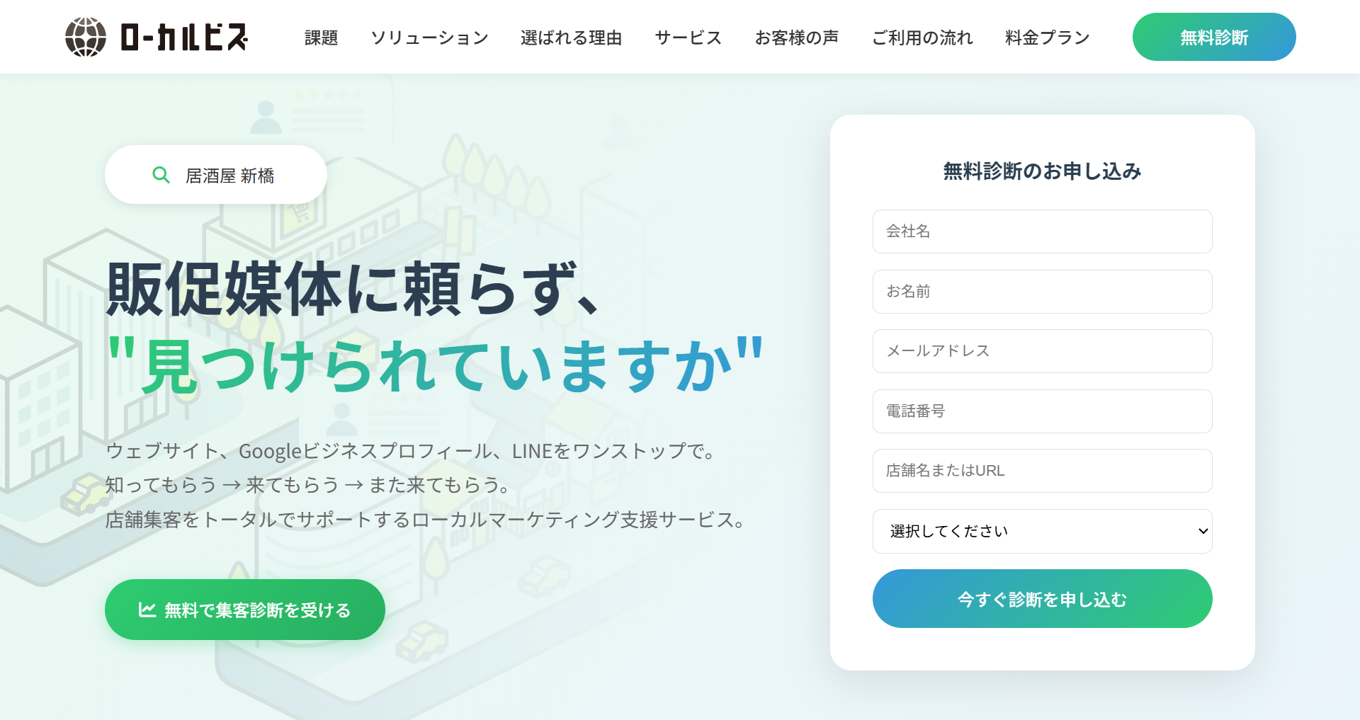 私たちは、ローカルマーケティング支援の「ローカルビズ」を中心に、企業や店舗の成長を支援するデジタルパートナーです。「ローカルビズ」ではローカルマーケティング支援をオールインワンで提供しております。課題解決型Webサイト制作「ウェブサイ」では、ホームページやECサイトの制作、Webマーケティング、運用サポートまでワンストップで対応しています。