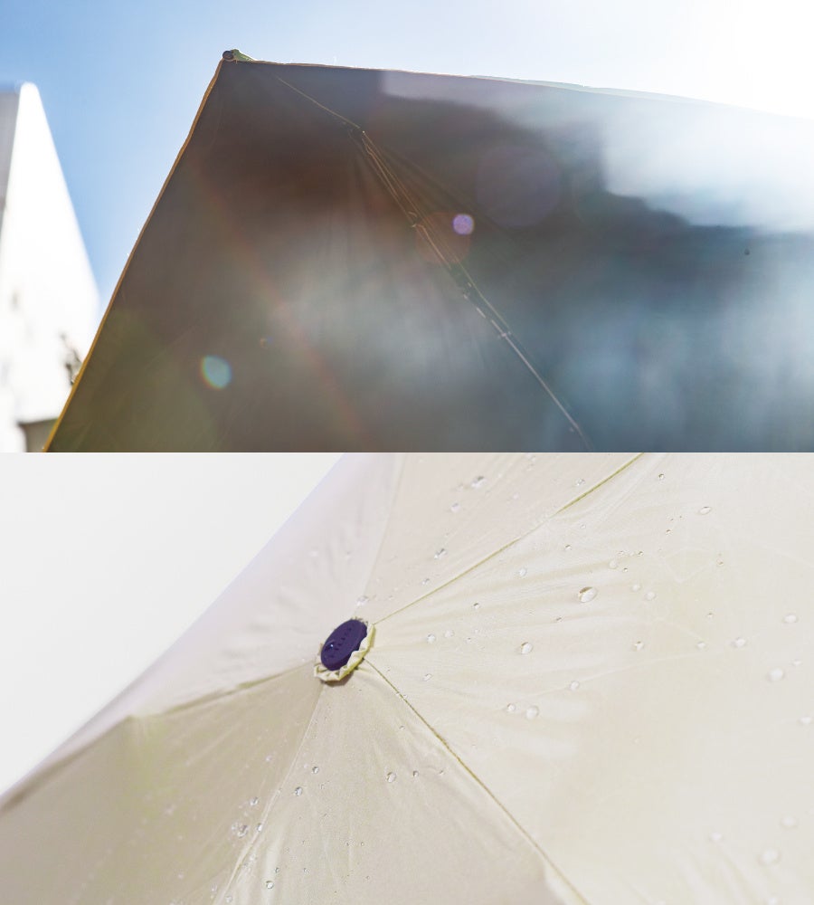 炎天下の地面は50℃近くまで上昇することもありますが、ALL WEATHER UMBRELLA Colorsの下では温度が低下。これにより、熱中症対策にもつながります。また、UVカット加工も施しているため、紫外線もしっかりガード。肌ダメージの予防にも効果的です。