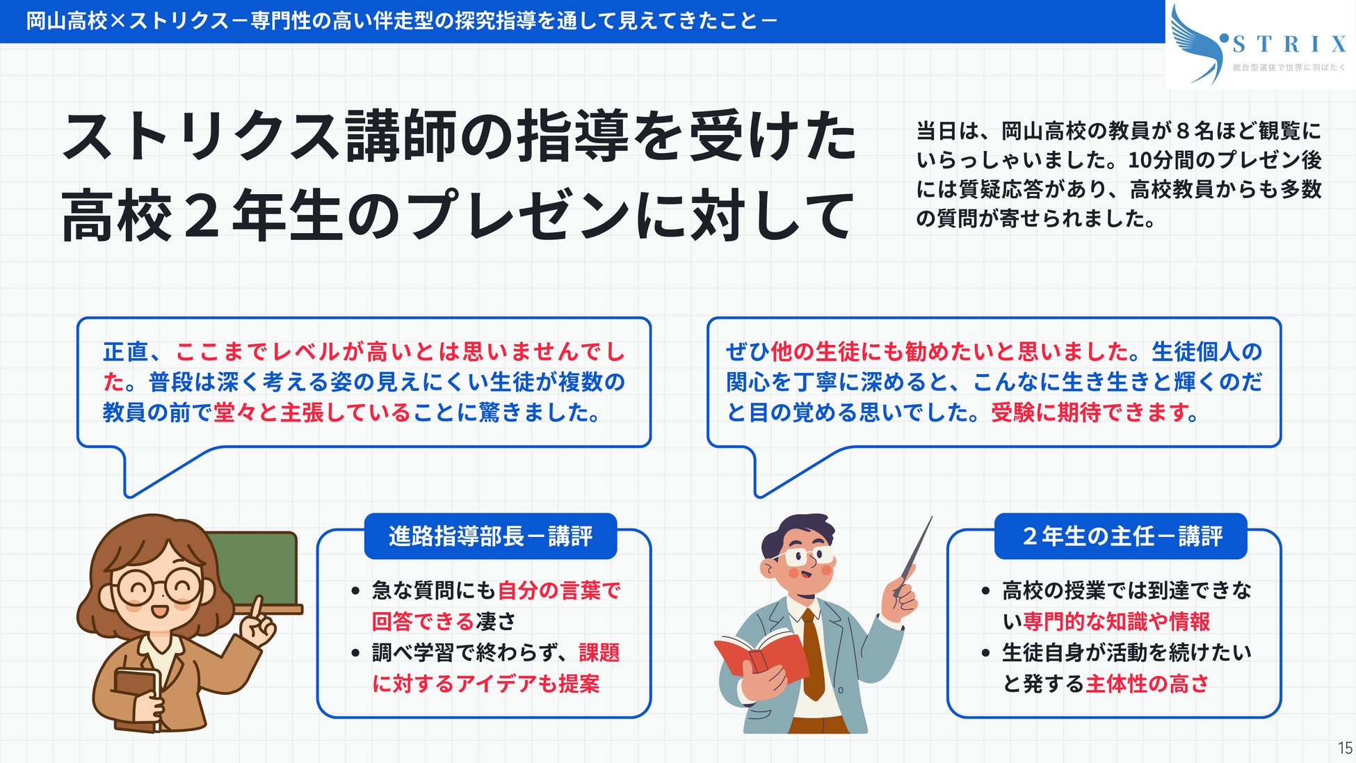 2026年3月、STRIXの指導を受けた高校2年生が高校内でプレゼンを行いました。