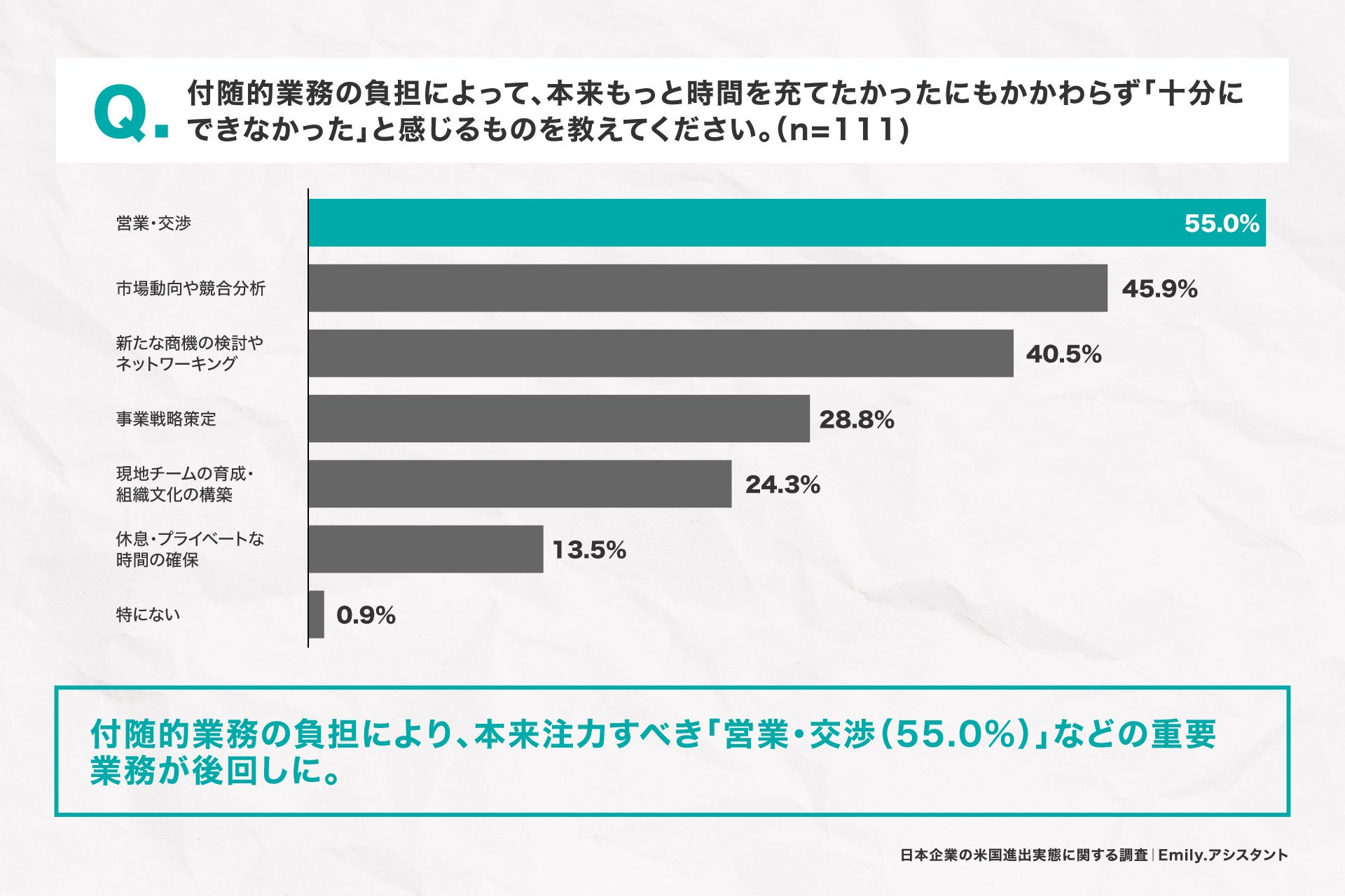 ~米国事業に携わる約8割が「付随的業務」に業務時間を奪われ、事業成長につながる重要業務が十分にできていない実態が明らかに~
