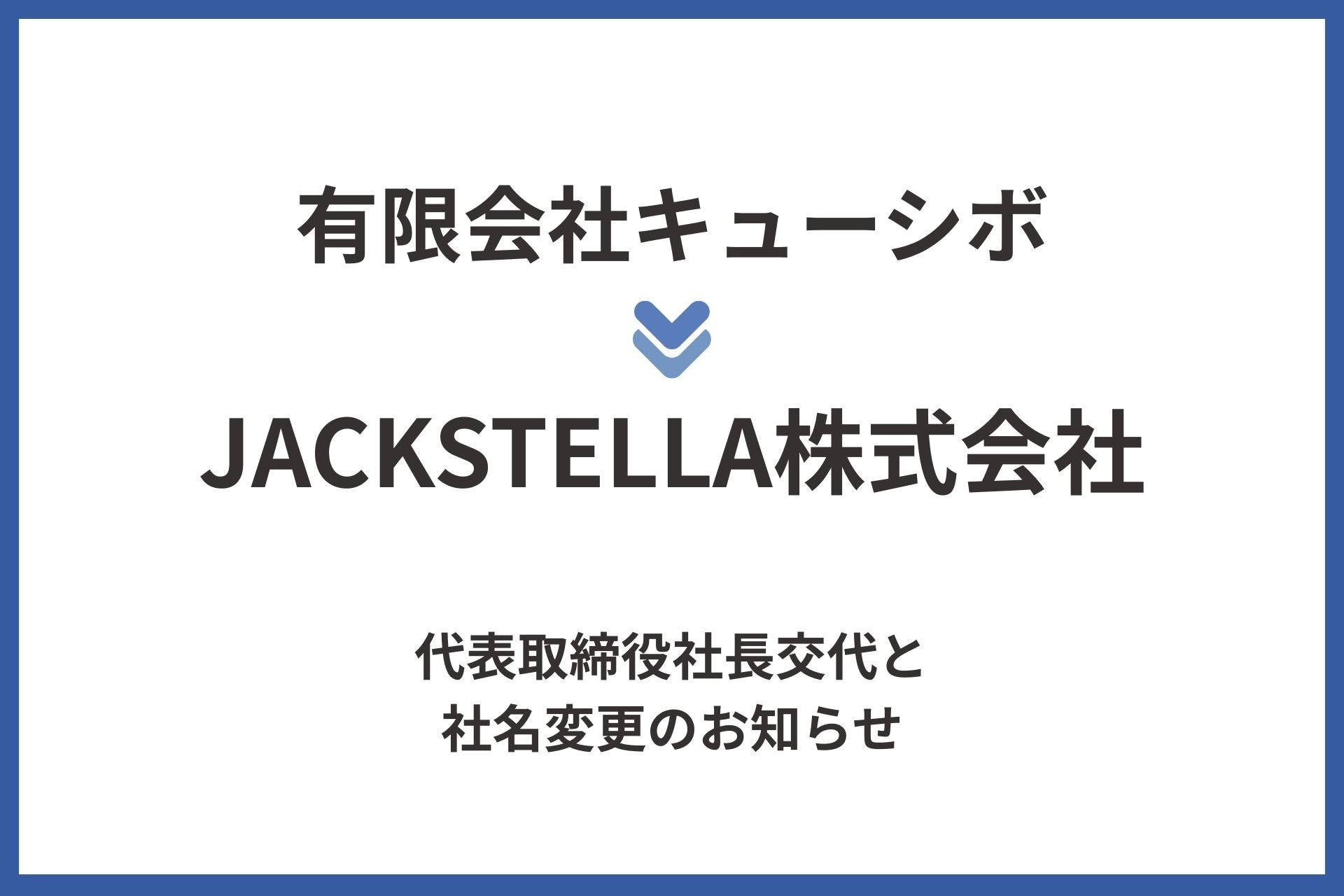 有限会社キューシボ、JACKSTELLA株式会社へ社名変更および代表取締役交代のお知らせ