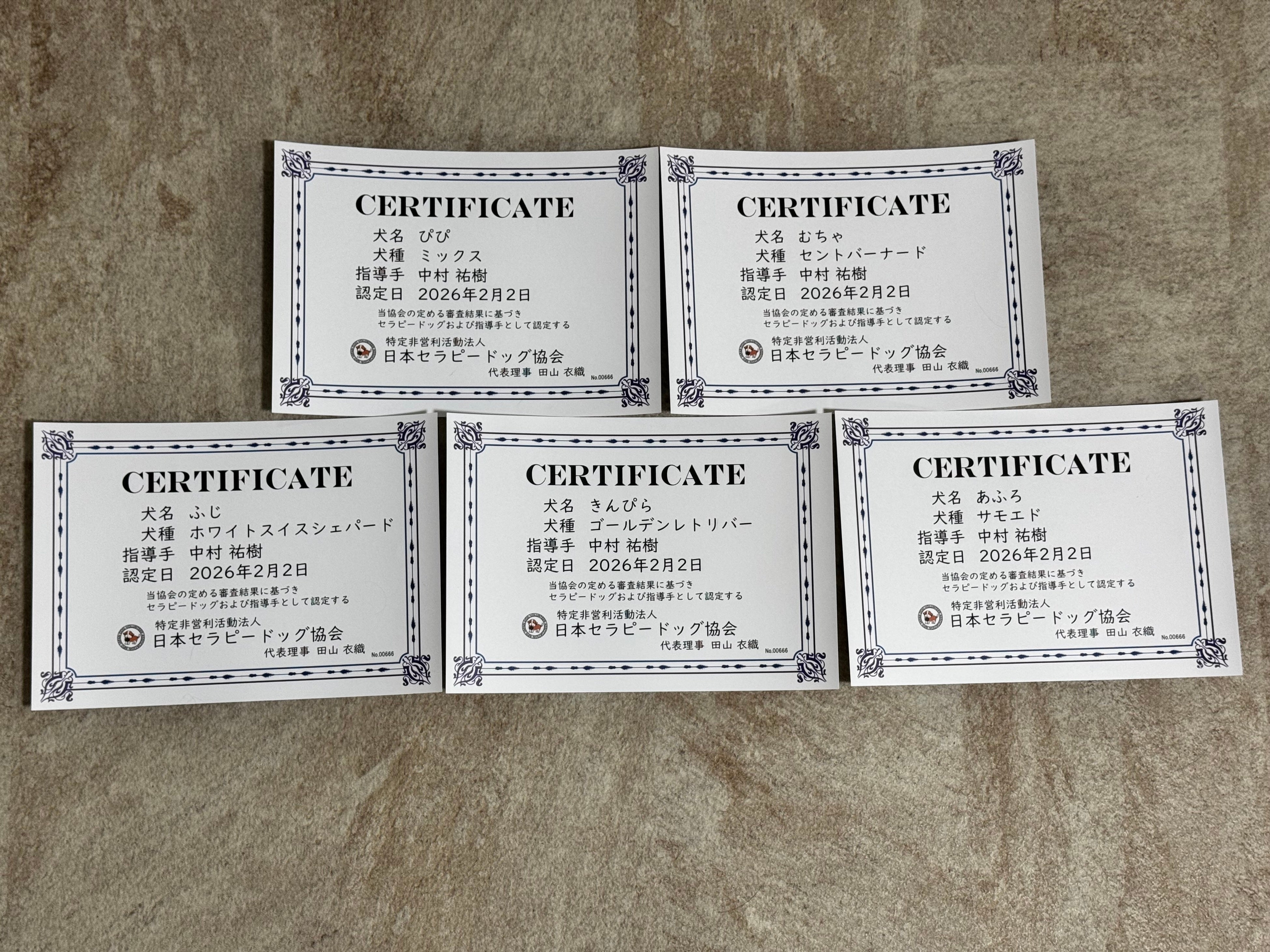 ― 在籍犬5頭がセラピードッグ認定審査会に合格 ―