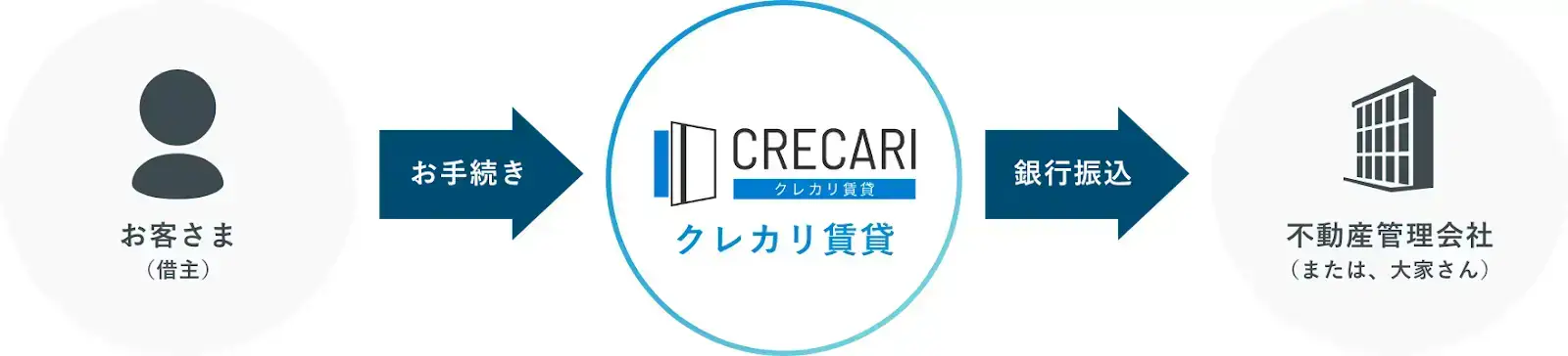しかし、クレカリ賃貸では物件がクレジットカード払いに対応していない場合でも、お客様に代わってクレカリ賃貸が支払先の銀行口座へ家賃を支払いますので、お住いの物件が対応していなくても大丈夫です!