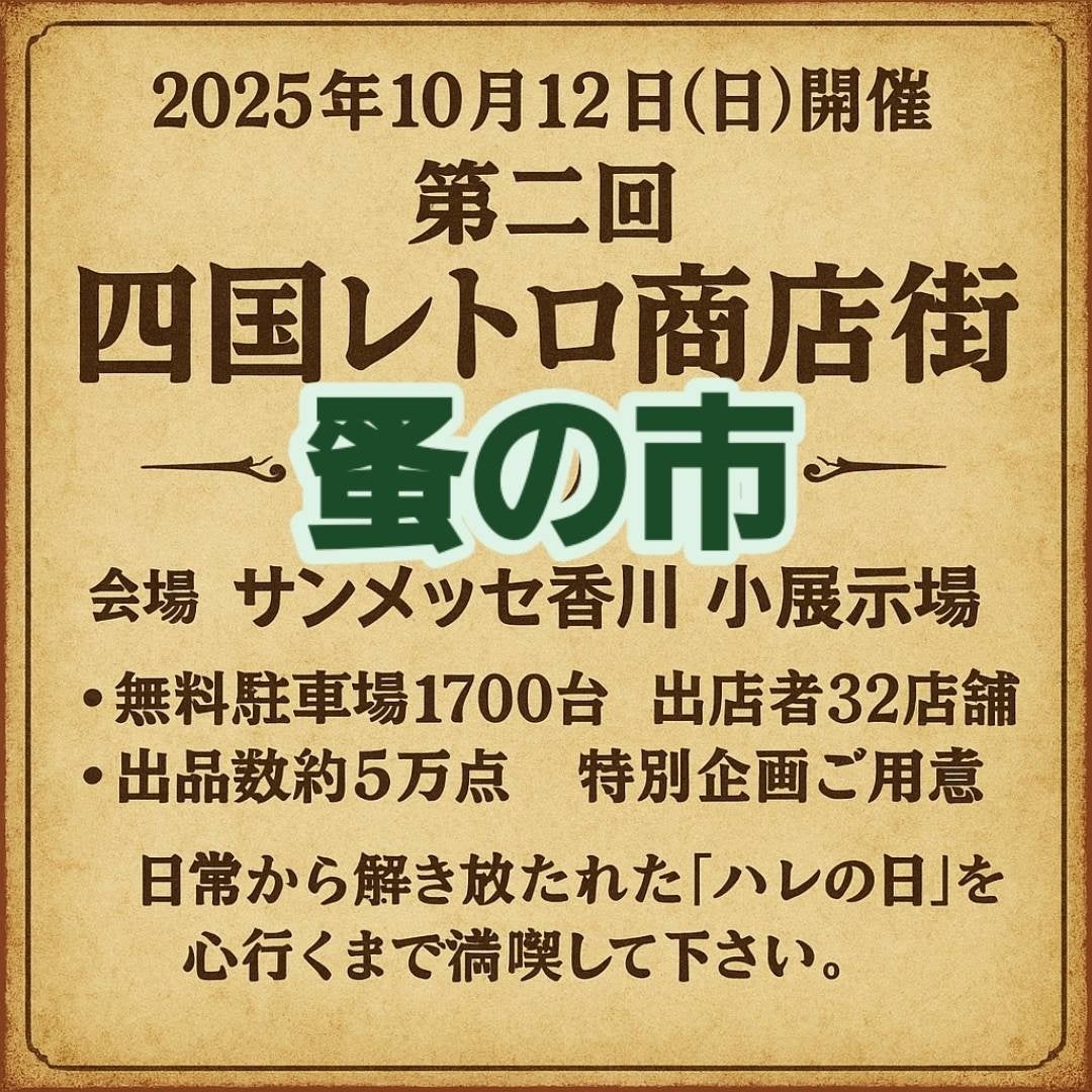 昭和・平成のあの頃を詰め込んだレトロ雑貨の祭典「四国レトロ商店街蚤の市」が、2025年10月12日(日)、香川県高松市・サンメッセ香川 小展示場で開催されます。