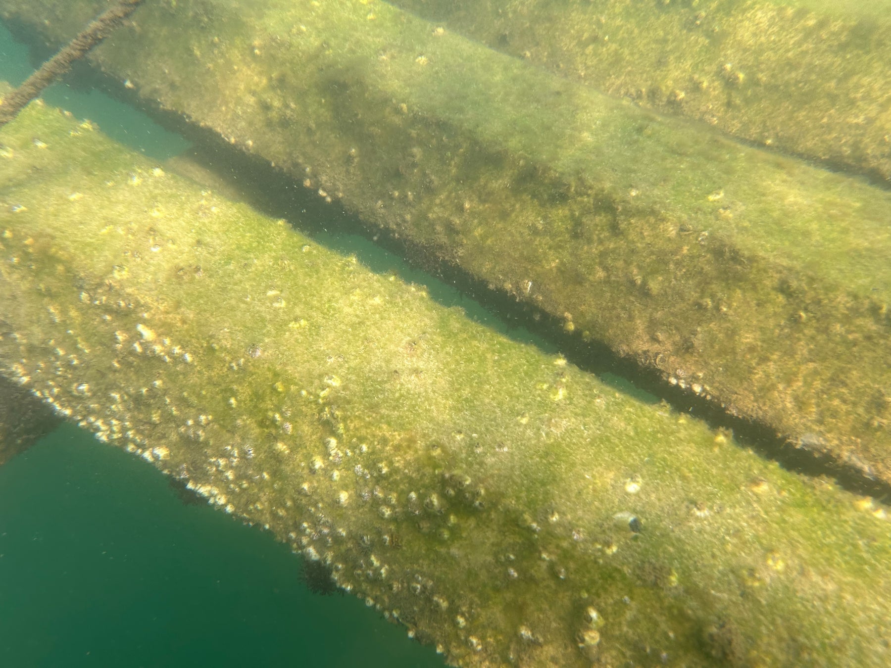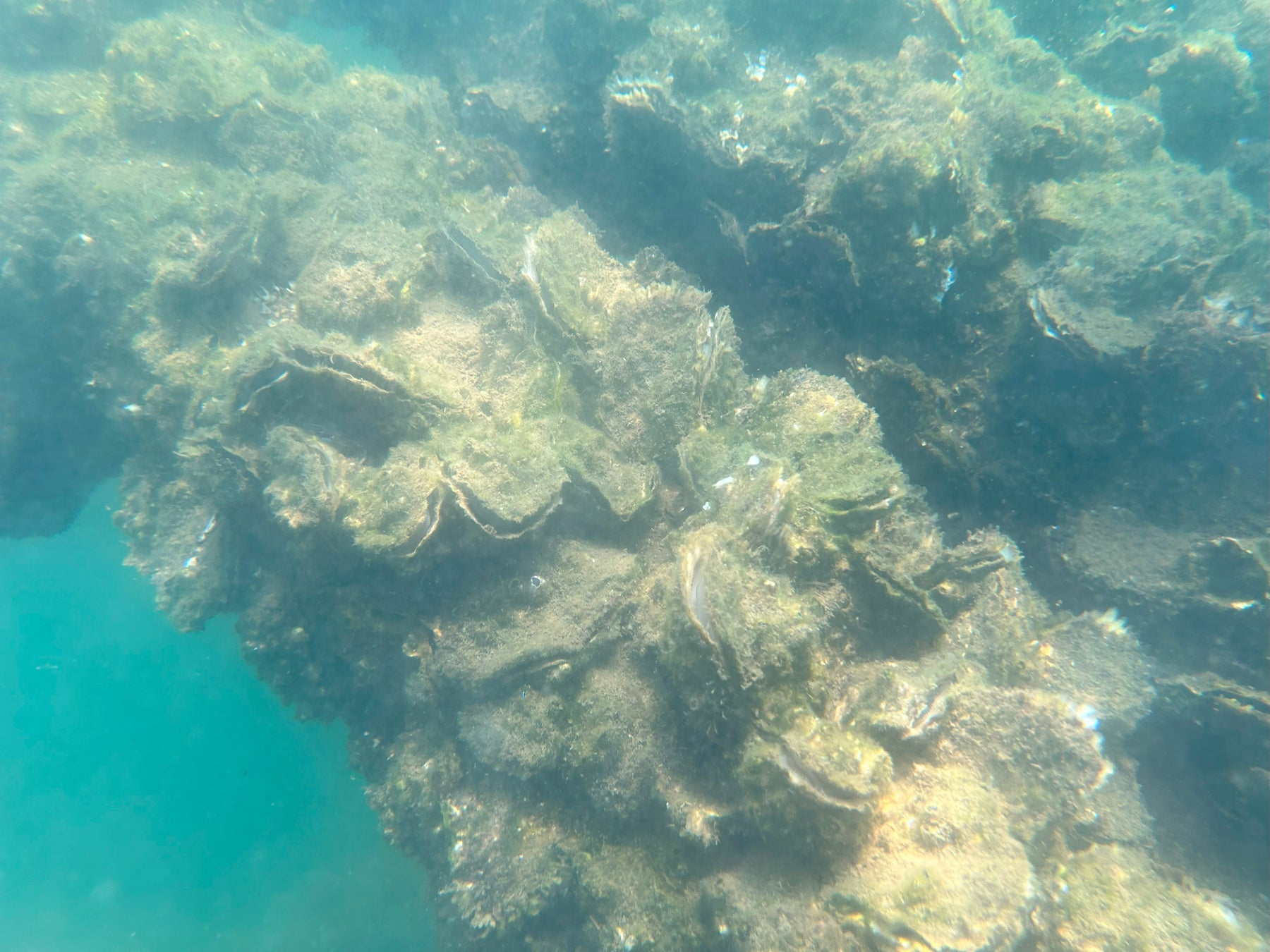 本製品は、牡蠣養殖用の支柱としても応用可能です。実証試験では、従来のコンクリートよりも早く生物膜が形成されることで、牡蠣の産卵時期とブロック体の投入時期が重なり、岩牡蠣の自然着生が多数見受けられました。六角形の形状は、海流の少ない(水の動きが少ない)閉鎖環境において、潮汐流を上手く活用できる形状となっています。ブロック体表面は常に新鮮な水と入れ替わることで、牡蠣の稚貝や浮遊性の藻類も自然定着しやすくなり、成長促進や水質浄化の波及効果も期待できます。