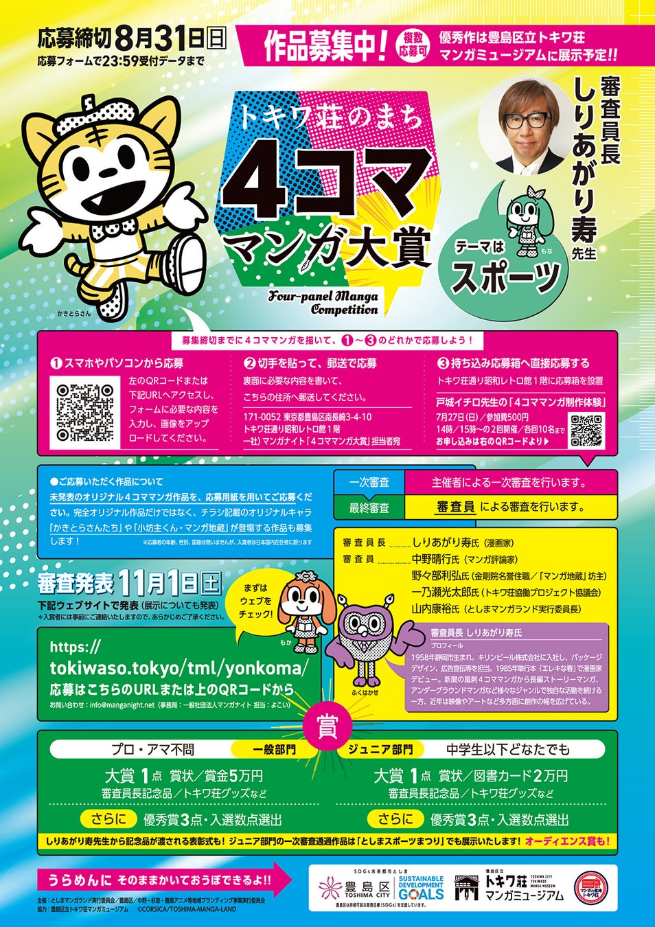 豊島区、としまマンガランド実行委員会、中野・杉並・豊島アニメ等地域ブランディング事業実行委員会は、令和7年7月1日(火)から8月31日(日)までの期間、第5回「トキワ荘のまち4コママンガ大賞」の作品を募集します。