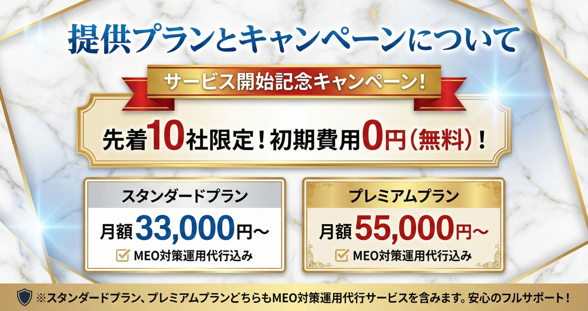 ※スタンダードプラン、プレミアムプランどちらもMEO対策運用代行サービスを含みます。