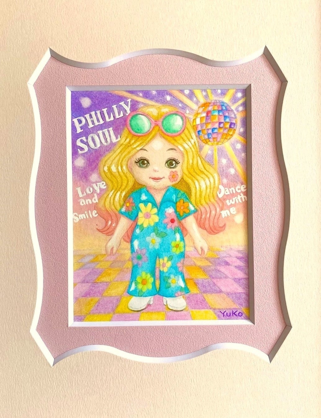 転勤族の家庭で育ち、全国を転々とする中、小学2年生から4年生までの間を千葉県市川市で過ごしました。当時は、今はもう取り壊されてしまった自衛隊官舎・二俣団地に住み、二俣小学校に通っていました。今回の個展が千葉県船橋市で開催されることになり、昭和の時代に暮らしていた千葉での思い出がふとよみがえりました。船橋にお買い物に行ったり、エレクトーンを習っており、発表会では母が花柄や動物柄の手作りのドレスを作ってくれました。このような記憶から、レトロな花柄や動物柄を取り入れた懐かしさと可愛らしさを感じる世界を作品にしました。今福優子のルーツともつながるこの地での個展は、特別な想いを込めて開催いたします。