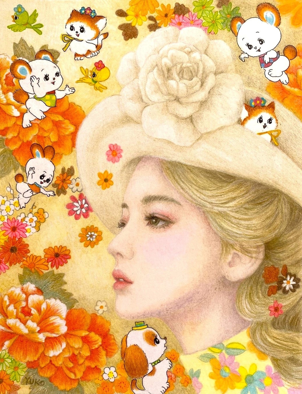 色鉛筆画家・今福優子は、2025年8月7日(木)から13日(水)まで、東武百貨店船橋店にて個展「今福優子 色鉛筆画展 ~レトロな気分~」を千葉県で初めて開催いたします。 本展では、誰もが一度は手にしたことのある「色鉛筆」を使い、懐かしい花柄や動物柄に囲まれた女性を描いた“レトロかわいい”新作20点を中心に展示販売いたします。 昭和100年という節目の年に、今福優子がかつて暮らした思い出の地・千葉で、色鉛筆の繊細なタッチで描かれた、可愛さとどこか懐かしく感じる世界をお楽しみください。 入場は無料で、会期中にはお子様向けのワークショップも開催いたします。
