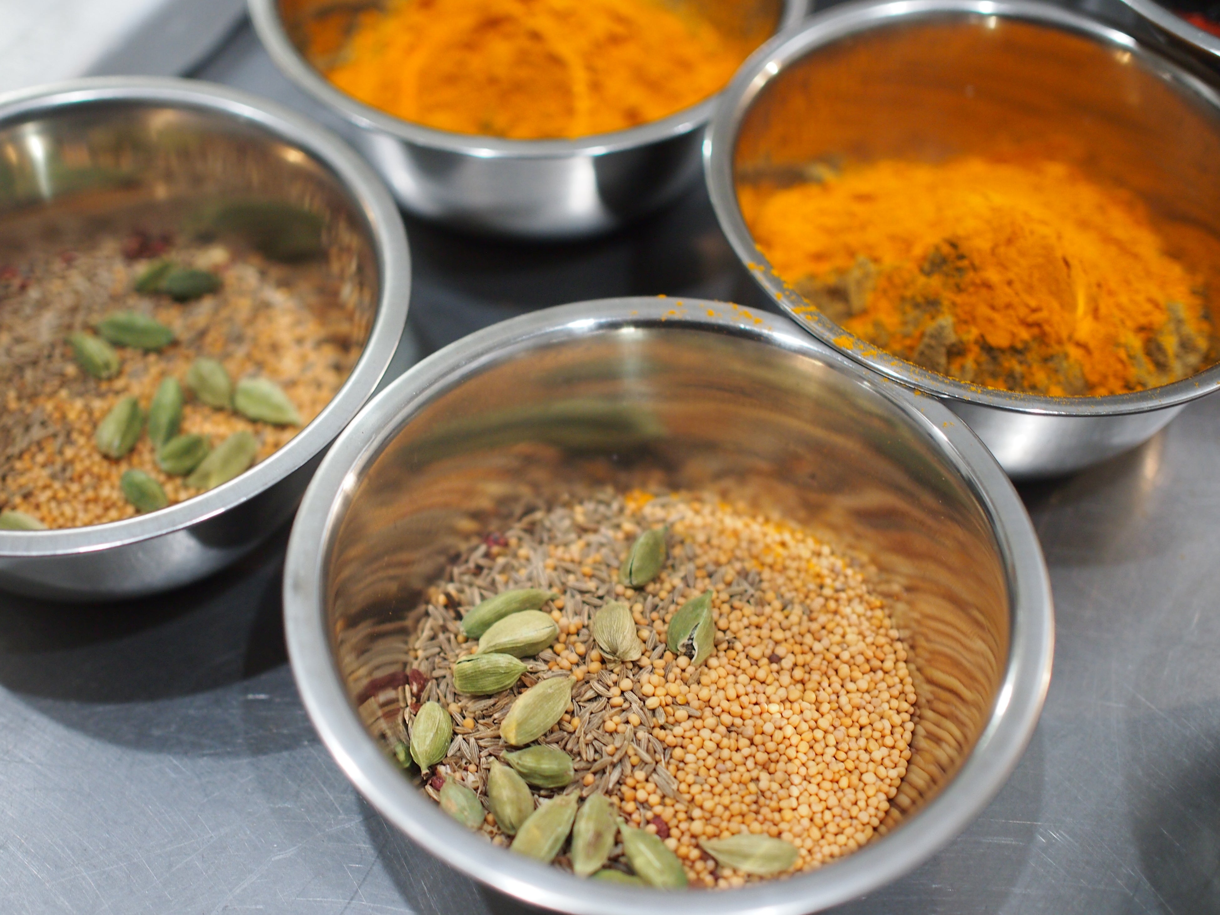 鰹出汁をていねいにとり、玉ねぎを飴色になるまでじっくり炒め、2時間かけて仕上げた自家製マサラを使用しています。