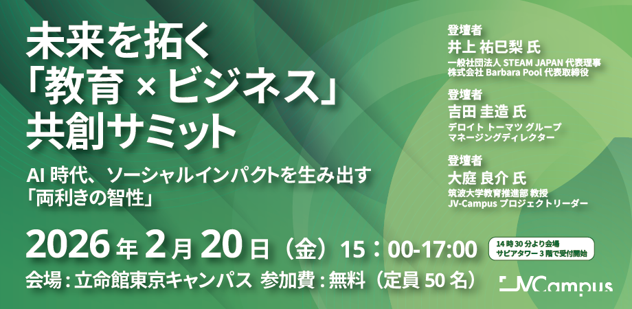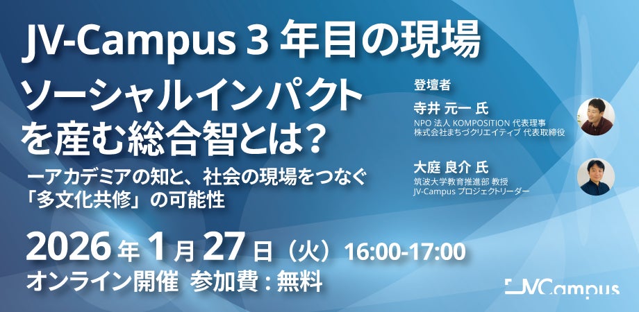 国際教育プラットフォーム「JV-Campus」は、2026年1月27日および2月20日に「クロスオーバーイノベーション」イベントを開催いたします。
